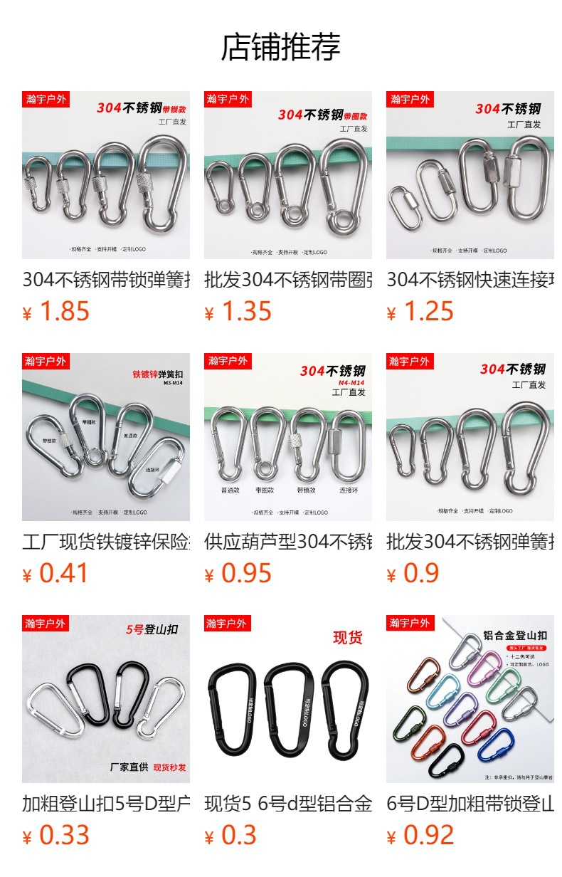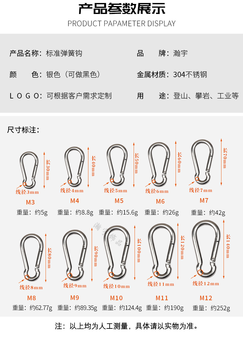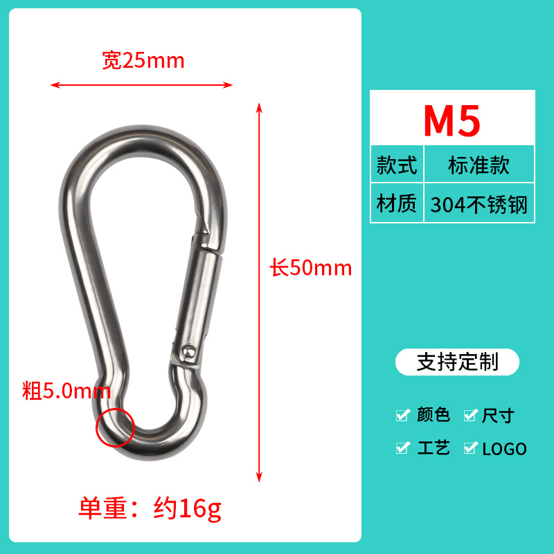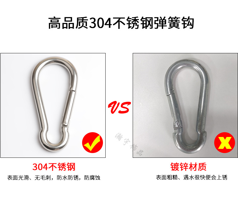스테인리스 스프링 훅 304 재질, 암벽등반 로프 잠금 장치, 등산용 카라비너, 점핑베드 연결 링, 스프링 버클, 안전 버클스토어 가기