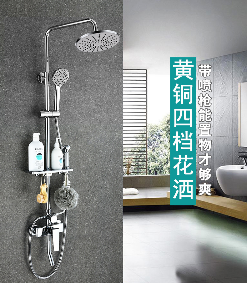 Faw 모든 구리 수도꼭지 샤워 세트 표면에 스프레이 건 가압 4 단 샤워 노즐 세트 장착스토어 가기