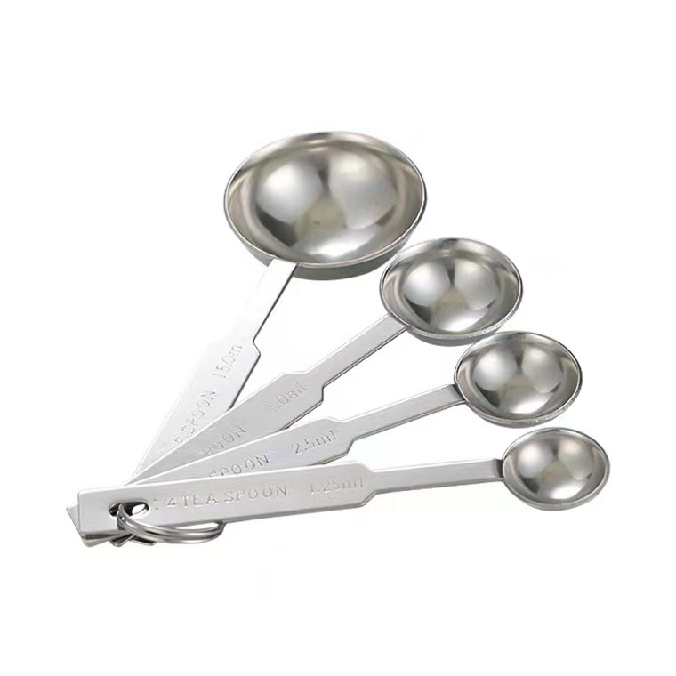 순수한 스테인레스 스틸 측정 숟가락 4 피스 세트 가정용 주방 베이킹 측정 숟가락 분유 숟가락 긴 손잡이 측정 숟가락 도구