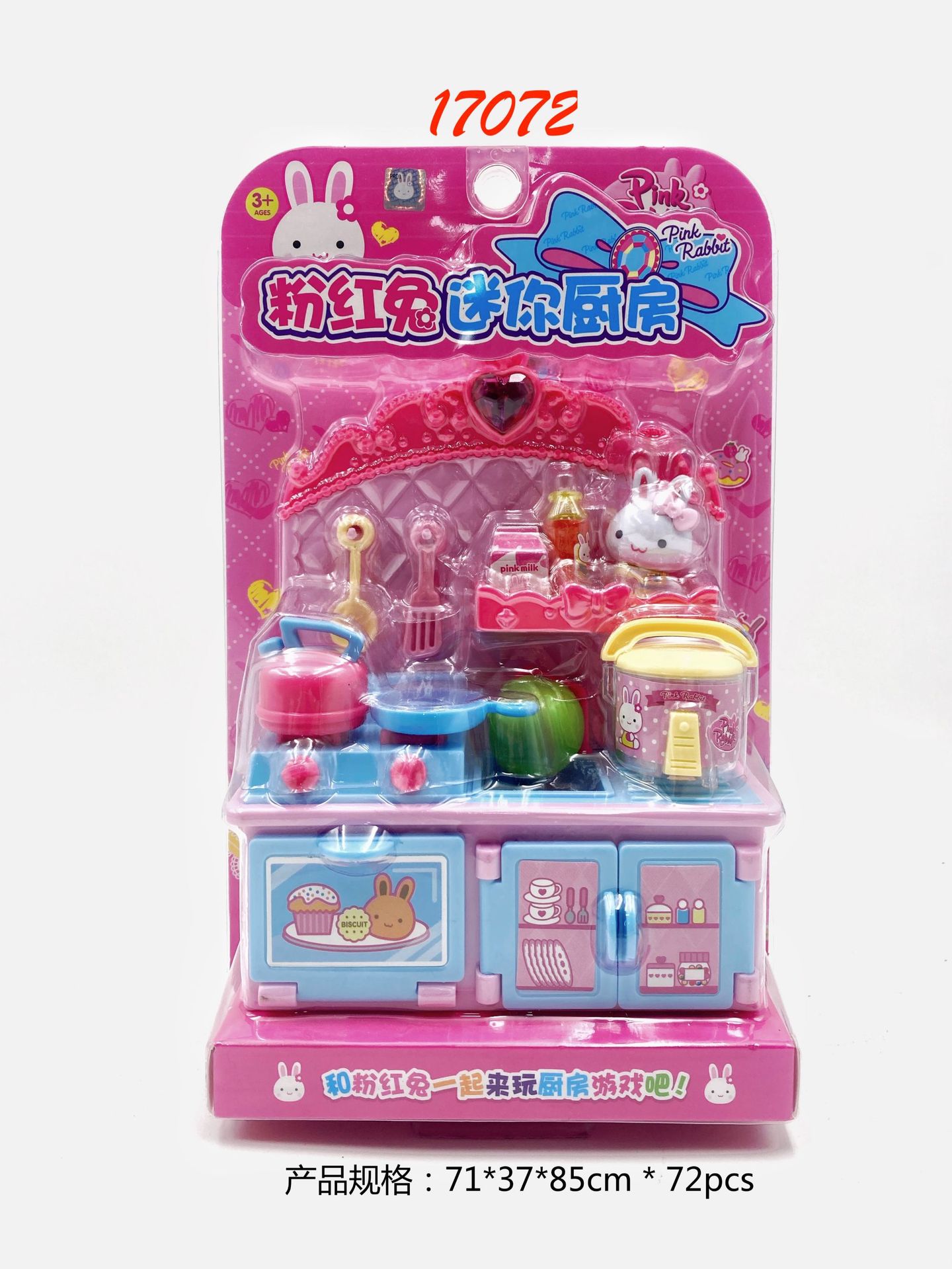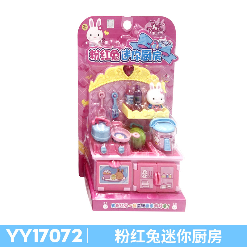 한 단어 핑크 토끼 집 미니 시뮬레이션 생활 장면 가구 도구 냉장고 만화 귀여운 소녀 선물