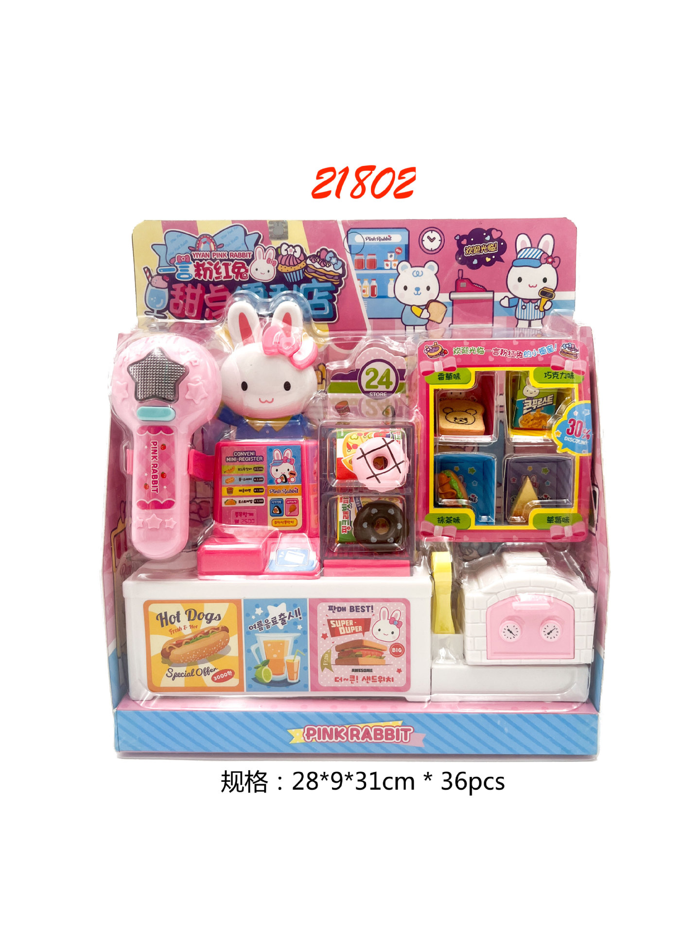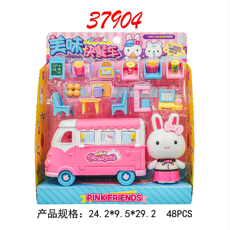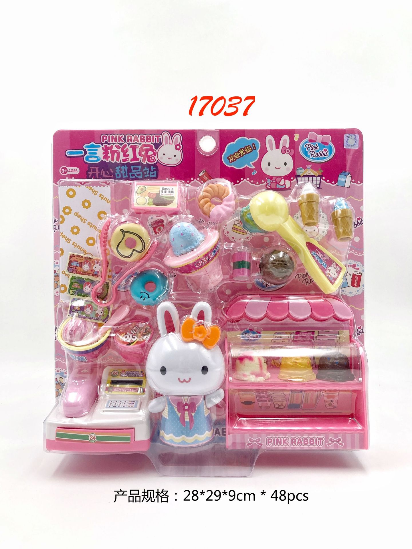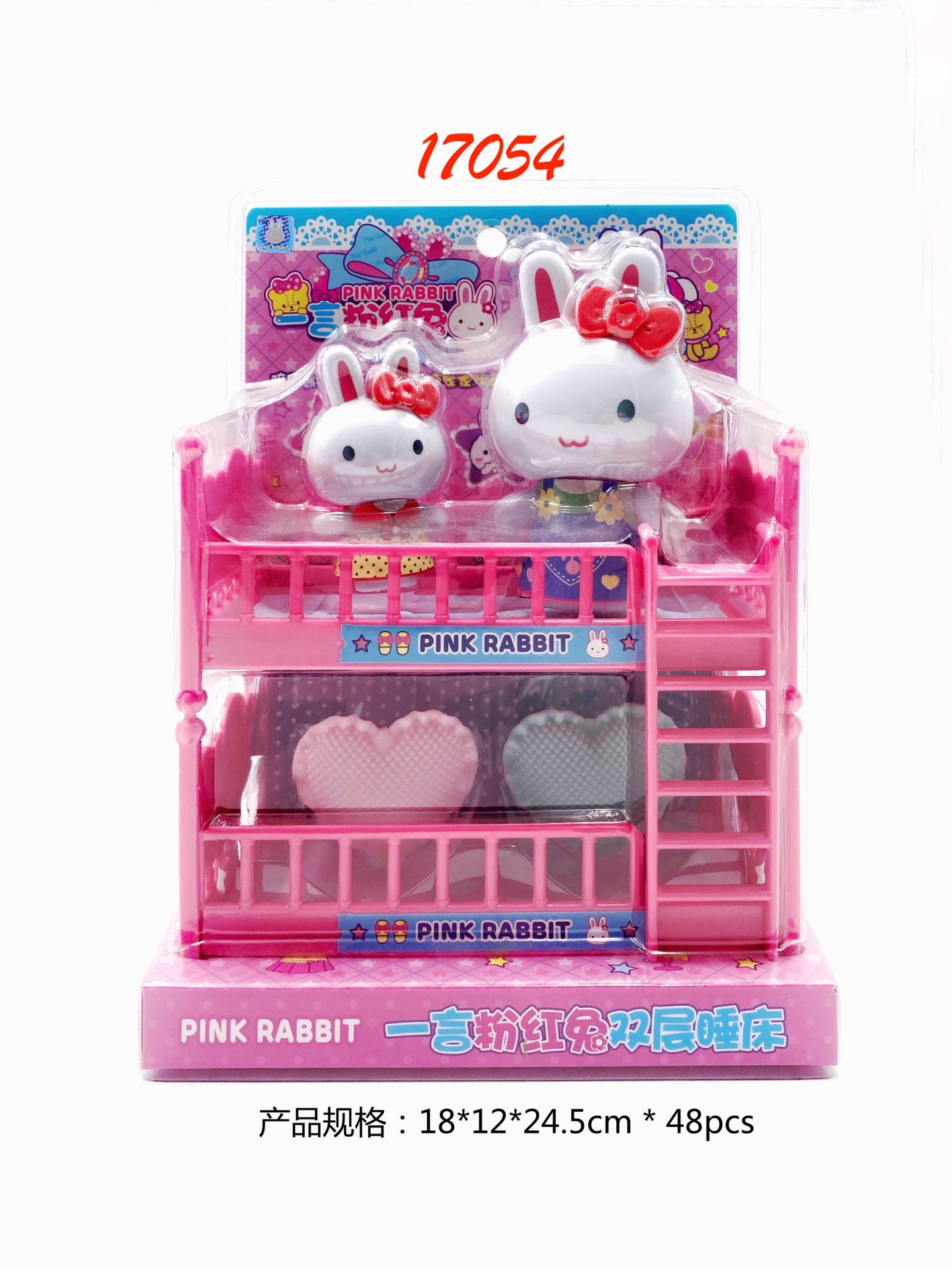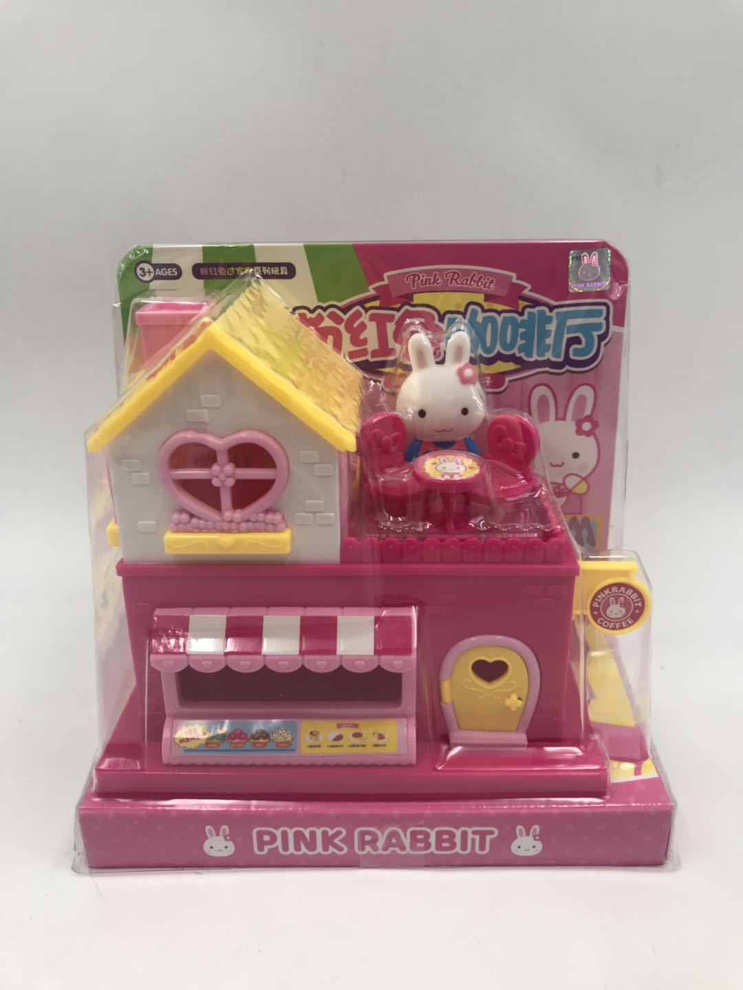 한 단어 핑크 토끼 집 미니 시뮬레이션 생활 장면 가구 도구 냉장고 만화 귀여운 소녀 선물스토어 가기