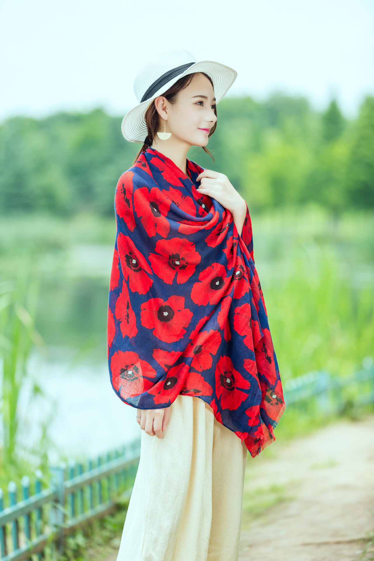 2019 새로운 분할 수염 양귀비 꽃 스카프 술 큰 꽃 비치 타월 숙녀 목도리 수출 도매스토어 가기
