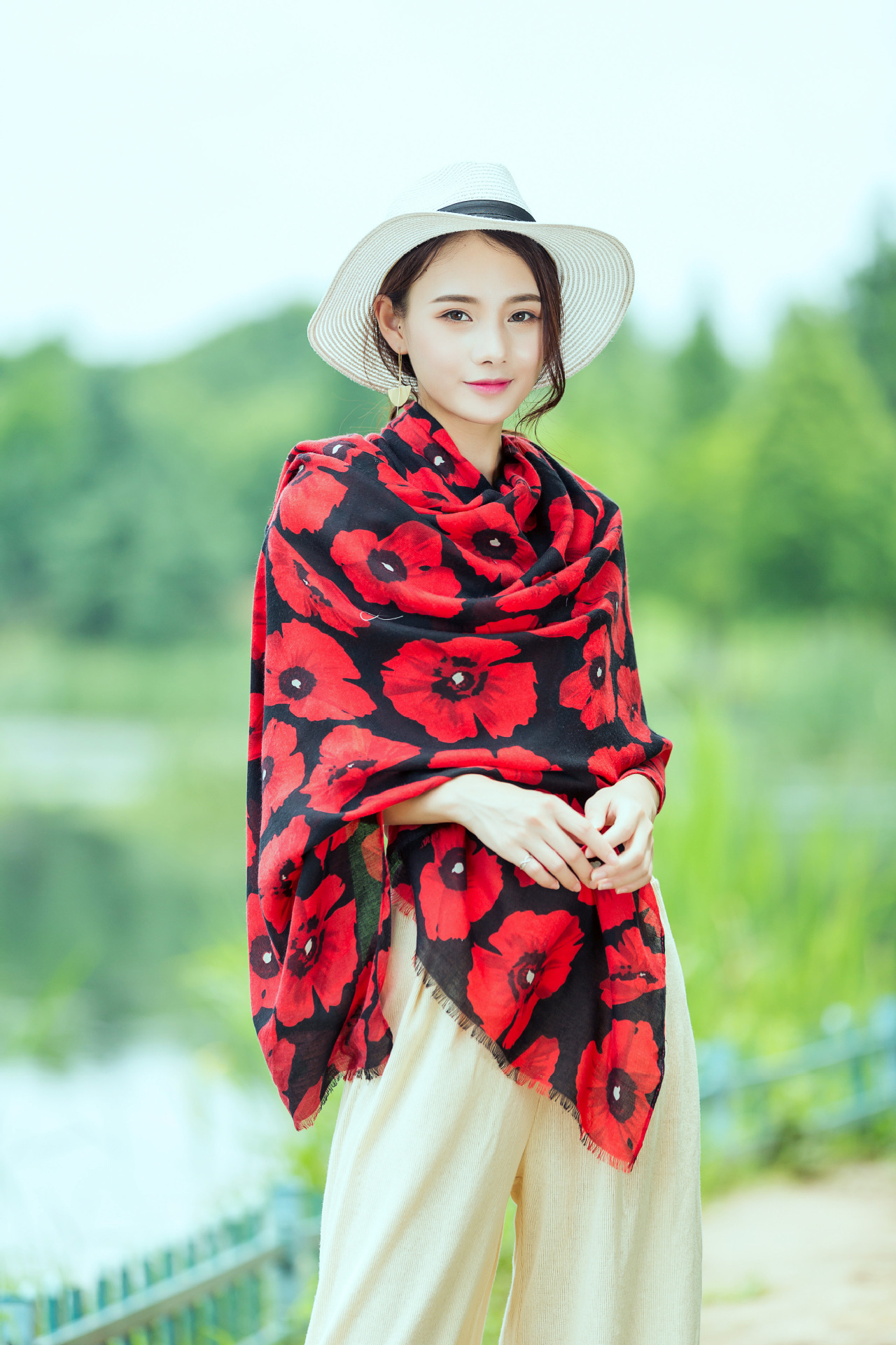 2019 새로운 분할 수염 양귀비 꽃 스카프 술 큰 꽃 비치 타월 숙녀 목도리 수출 도매