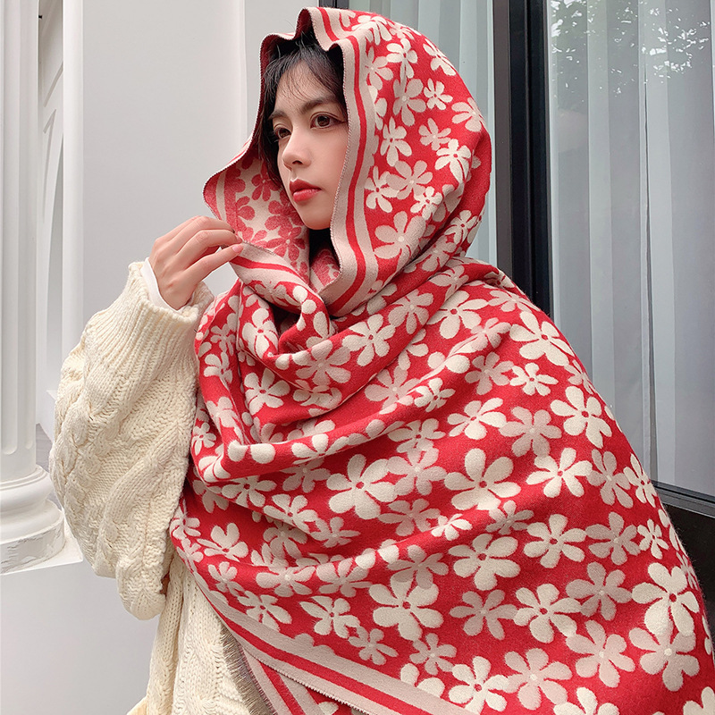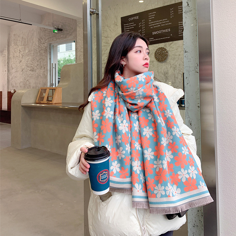 꽃 인쇄 한국 동대문 새로운 스타일 캐시미어 느낌 스카프 현 우아한 스타일 귀여운 소녀의 두꺼운 스카프스토어 가기