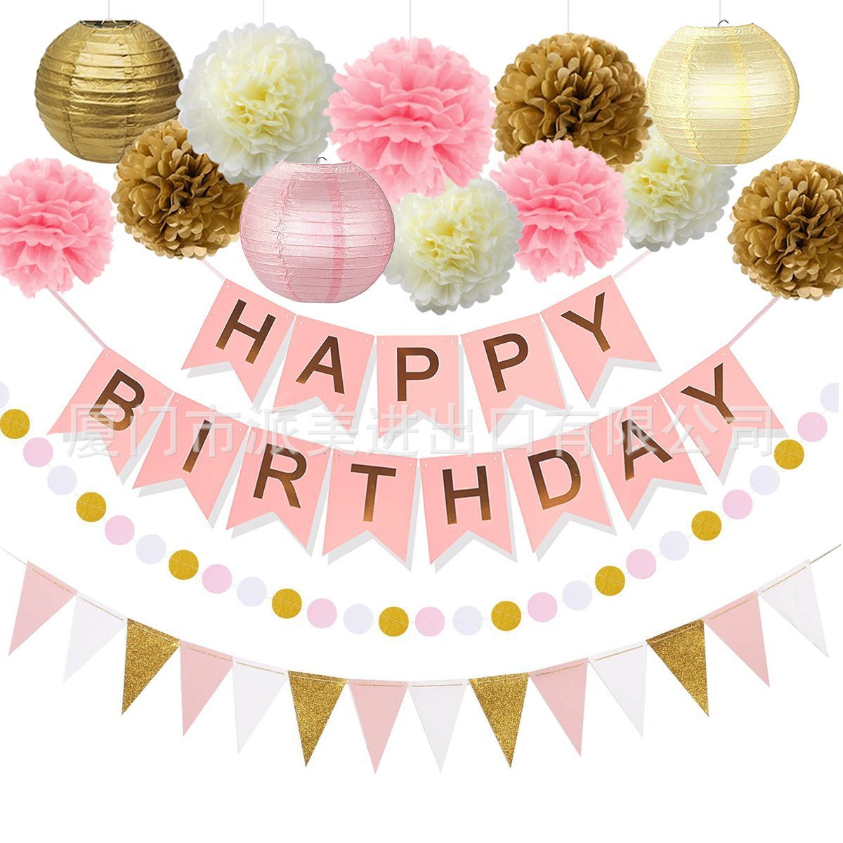 亚马逊热销产品 欧美生日派对装饰用品套装 纸花球 纸片串 纸灯笼