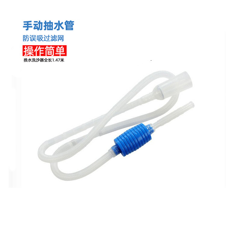 本品采用气压式虹吸原理设计,帮助鱼友方便简单的进行鱼缸换水抽水工作,取代古老用水管嘴巴吸的土办法,使养鱼变得更容易,更安全卫生。吸水同时可帮助清洗沙石及附在水草和沙床上的残渣和污渍。直至水从出水口出水