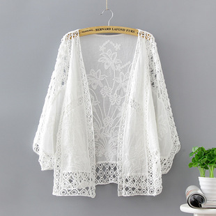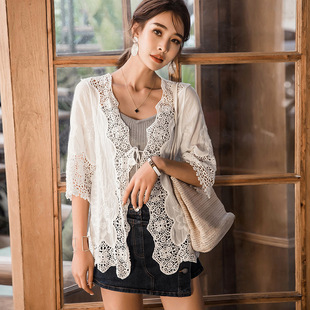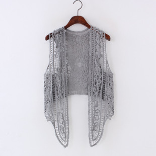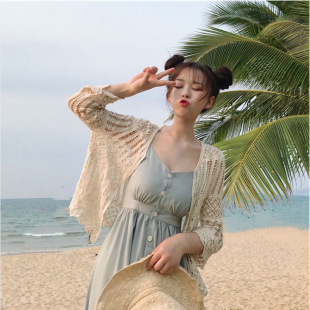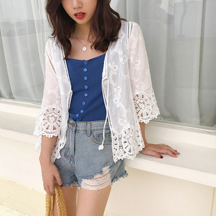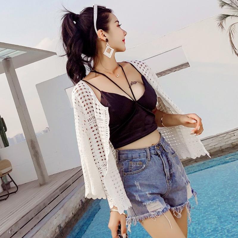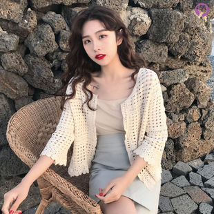 2019 여름 얇은 유행 니트 가디건 작은 숄 짧은 코트 여성용 짧은 모든 매치 외부 중공 탑스토어 가기