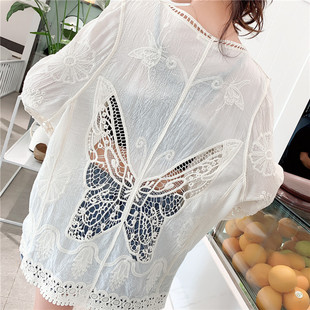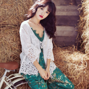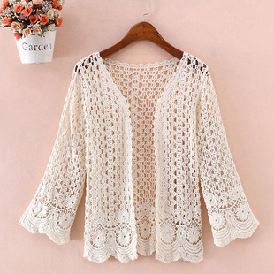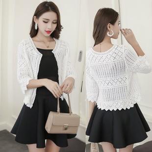 2019 여름 얇은 유행 니트 가디건 작은 숄 짧은 코트 여성용 짧은 모든 매치 외부 중공 탑