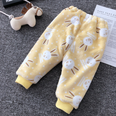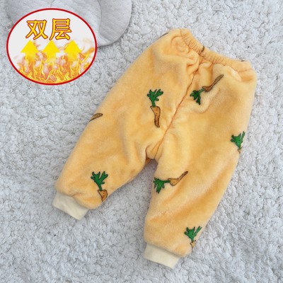 아기 바지 가을과 겨울 두꺼운 더블 레이어 기모 코튼 팬츠 오픈 가랑이 남성과 여성 아기 신생아 산호 양털 바지