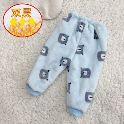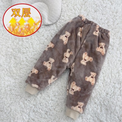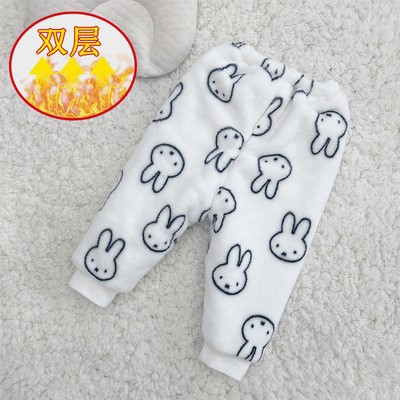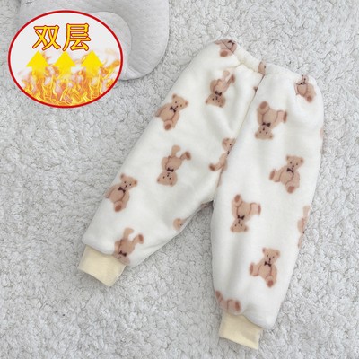 아기 바지 가을과 겨울 두꺼운 더블 레이어 기모 코튼 팬츠 오픈 가랑이 남성과 여성 아기 신생아 산호 양털 바지스토어 가기
