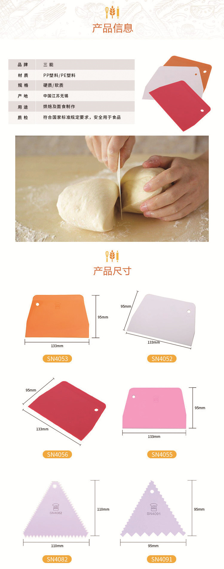 3 에너지 베이킹 스크레이퍼 플라스틱 반죽 커팅 나이프 스크래핑 패널 케이크 크림 스크레이퍼 스크레이퍼 베이킹 도구