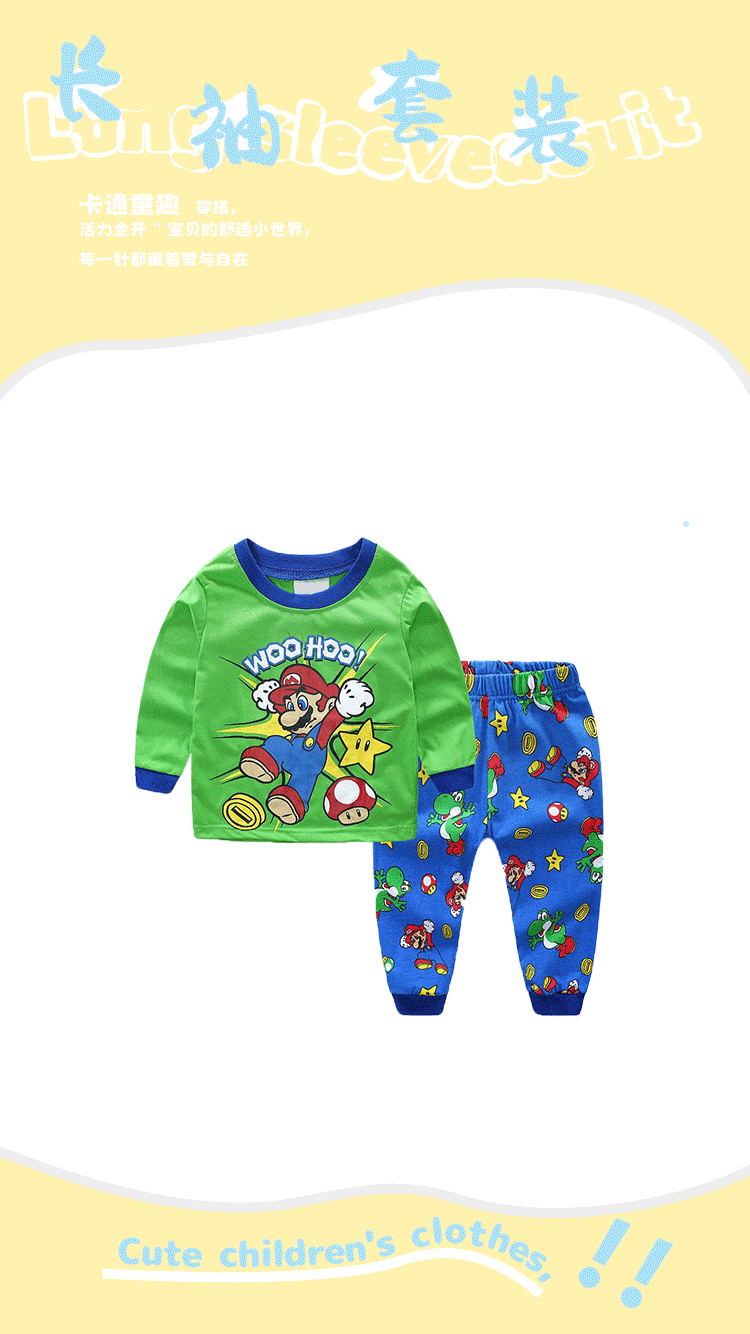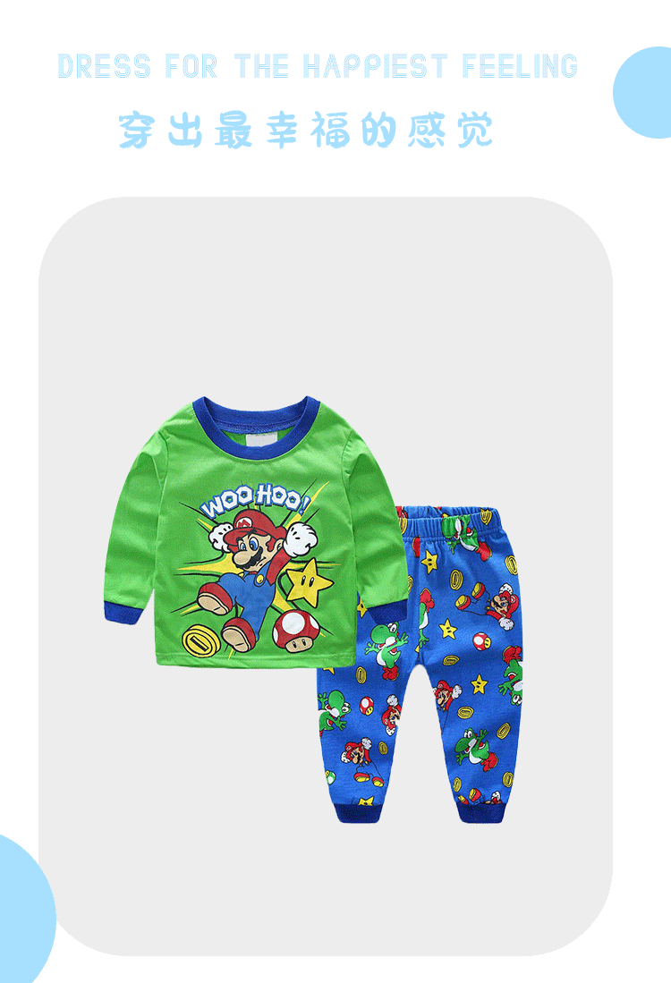 유럽풍 아동복 남아 홈웨어 세트 프린트 라운드넥 홈웨어 투피스 에어컨복스토어 가기
