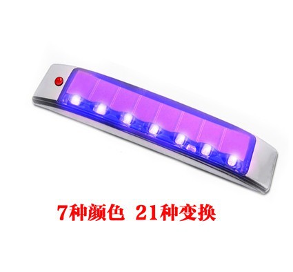 产品内置高灵敏度震动传感器和光线感应器件,夜间不法分子轻微碰触车身,灯光警示功能自动打开,可以引起路人注意,起到恐吓不法分子的作用。产品7组RGB灯珠可以调整出7种灯色,22种灯光模式,将产品粘贴于汽车后视镜、车门或前后保险杠位置,行车时可以警示其它车辆,预防追尾等事故。