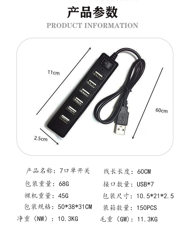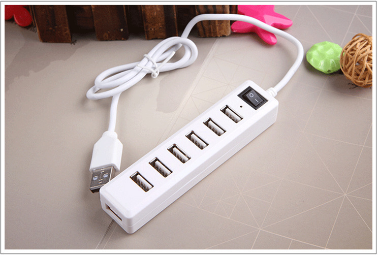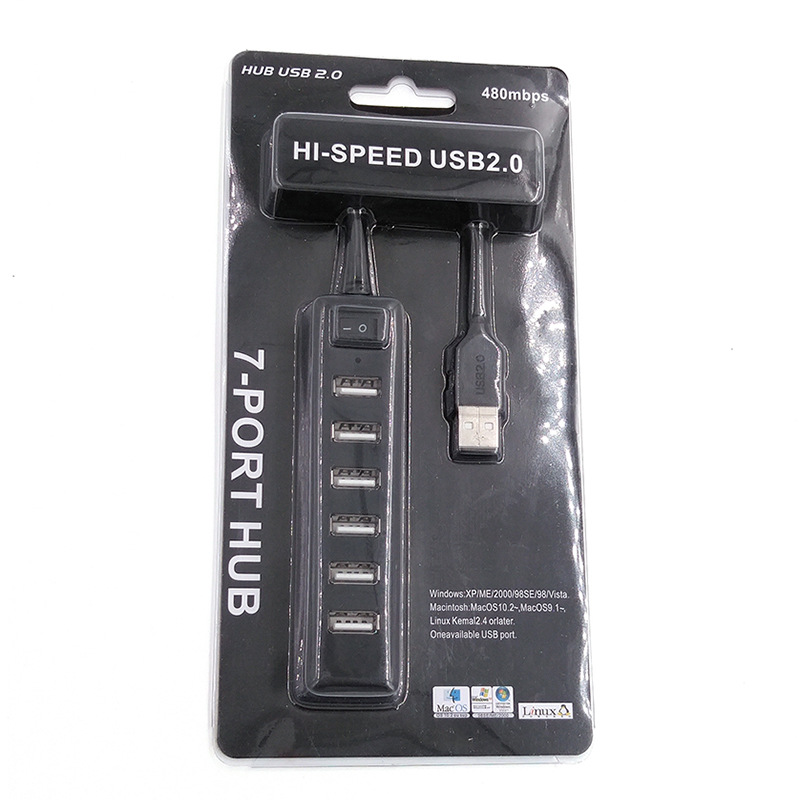 1、一个USB接口扩展成独立的7个USB接口,小巧、实用、方便,每个供电最高达500MA
