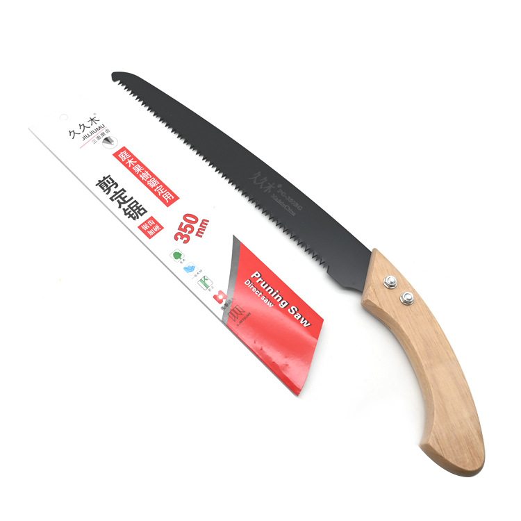 Jiujiu 나무 350mm 나무 손잡이 과일 나무 톱 정원 톱 녹화 전정 톱 망간 강철 두꺼운 판 3 면에 이빨 갈기