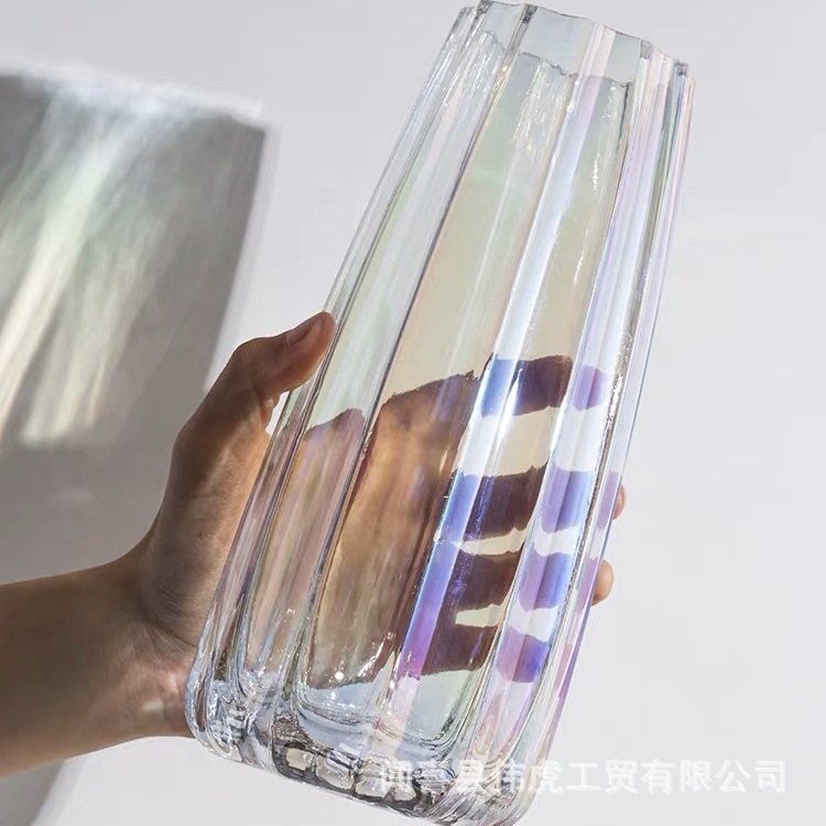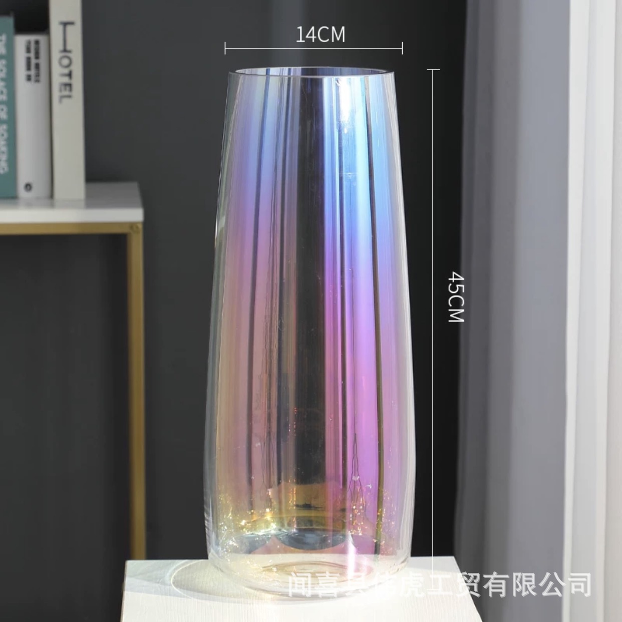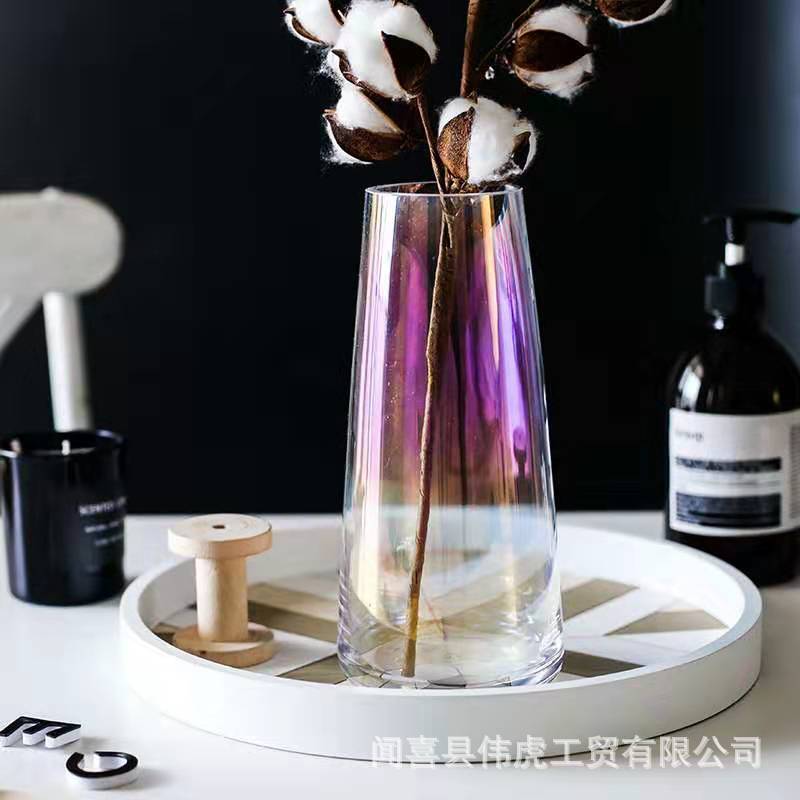 전기 도금 다채로운 오로라 유리 꽃병 현대 간단한 스타일 창조적 인 꽃 모델 방 장식 장식품