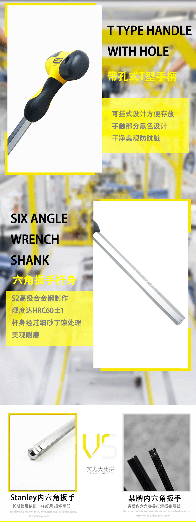 스탠리 도구 T형 내부 육각 렌치 내부 육각 렌치 드라이버 플랫 헤드 일반 확장 볼 헤드 드라이버스토어 가기