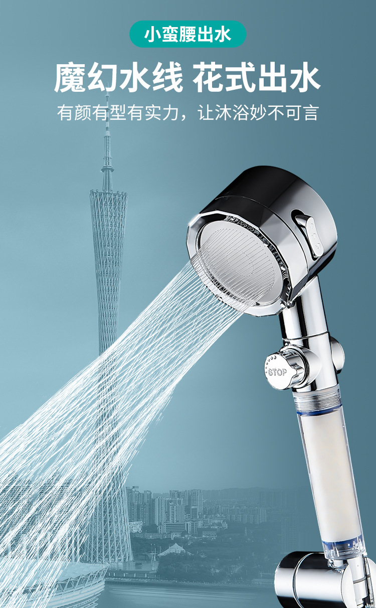 유바 메이플 리프 가압 샤워, 스위치 휴대용 조절 물 흐름 3 단 필터 마사지 핸드 헬드 욕실 샤워스토어 가기