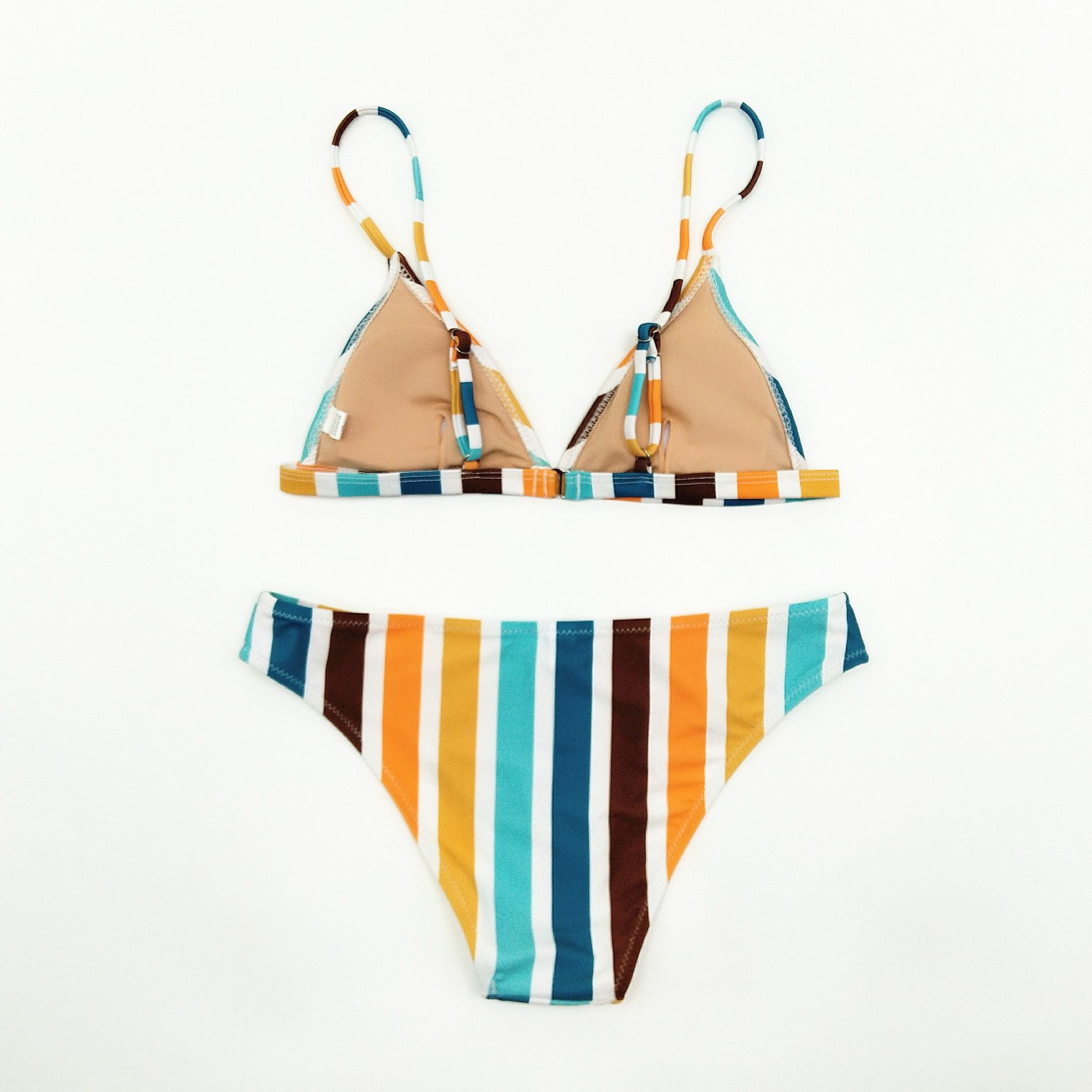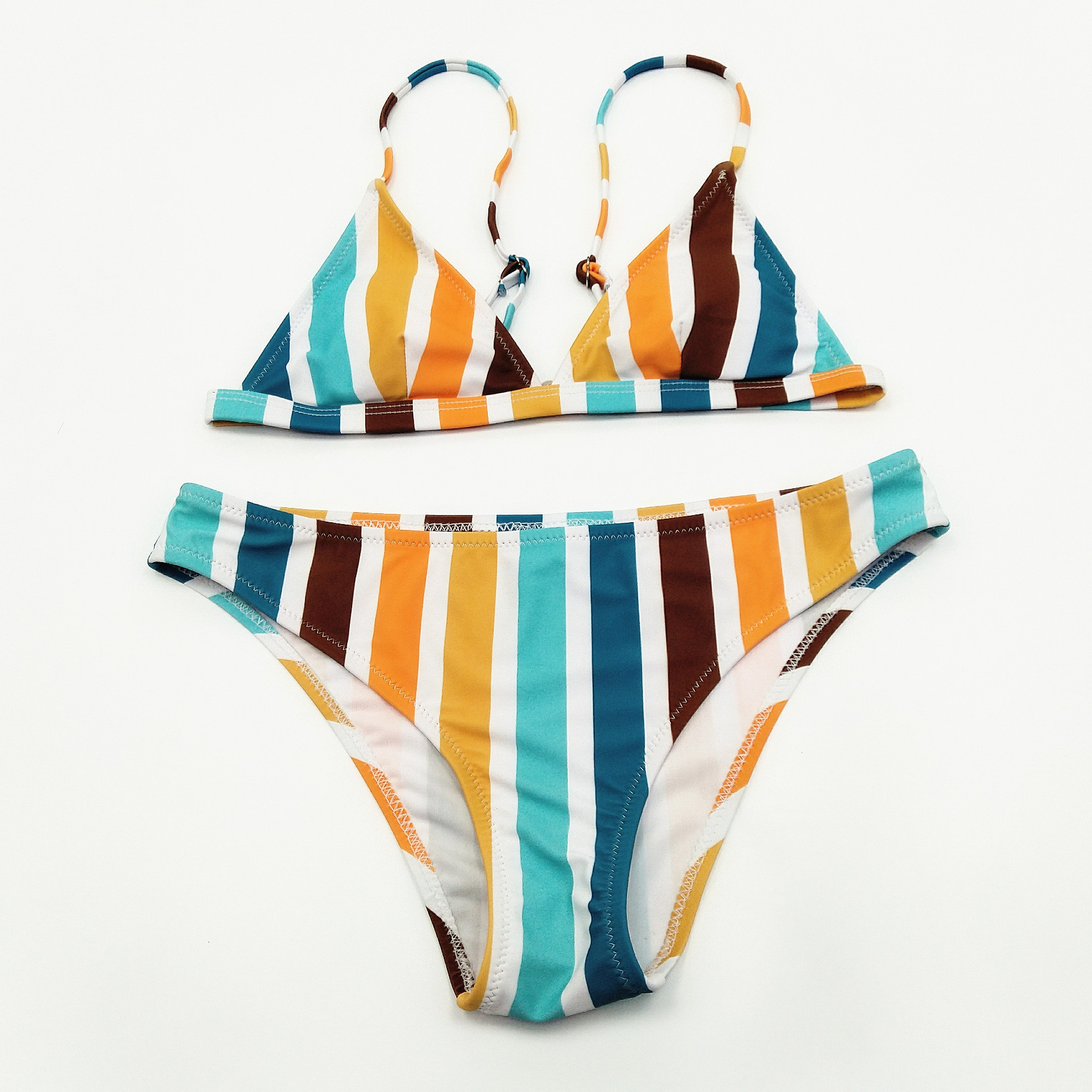 2024 새로운 레인보우 그레이 스트라이프 프린트 수영복 유럽과 미국의 삼각형 비키니 섹시한 스플릿 수영복스토어 가기