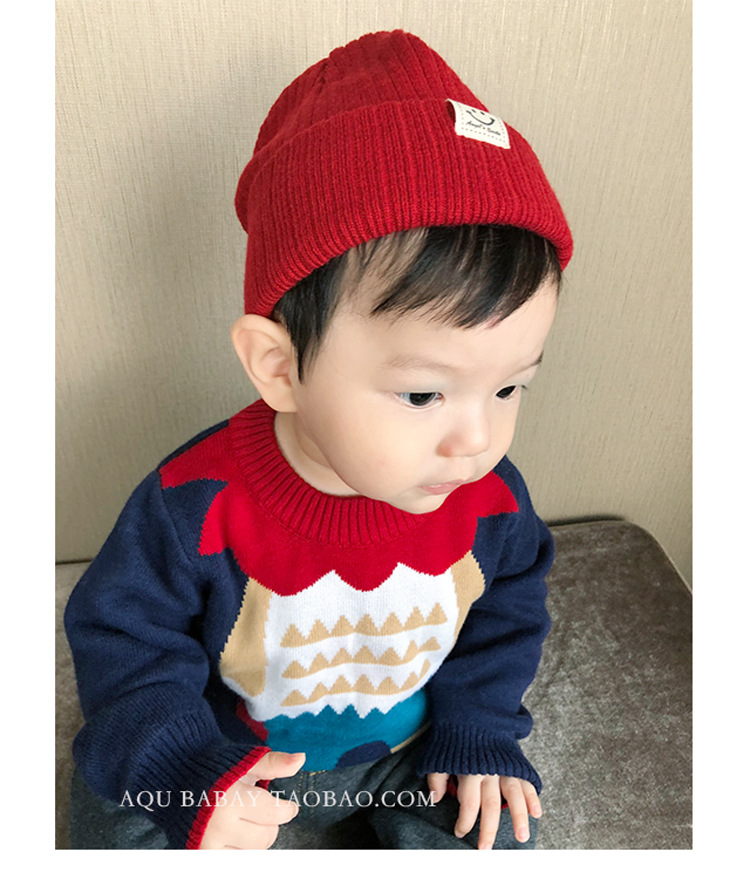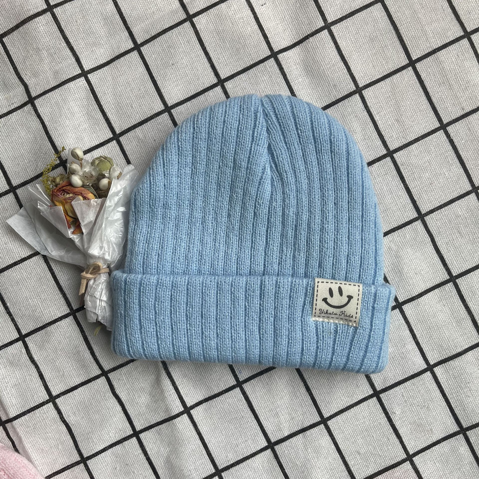 한국 스마일 페이스 풀오버 어린이 모자 봄과 가을 아기 모자 니트 모든 매치 소년과 소년 따뜻한 모자 아기 발가락 모자