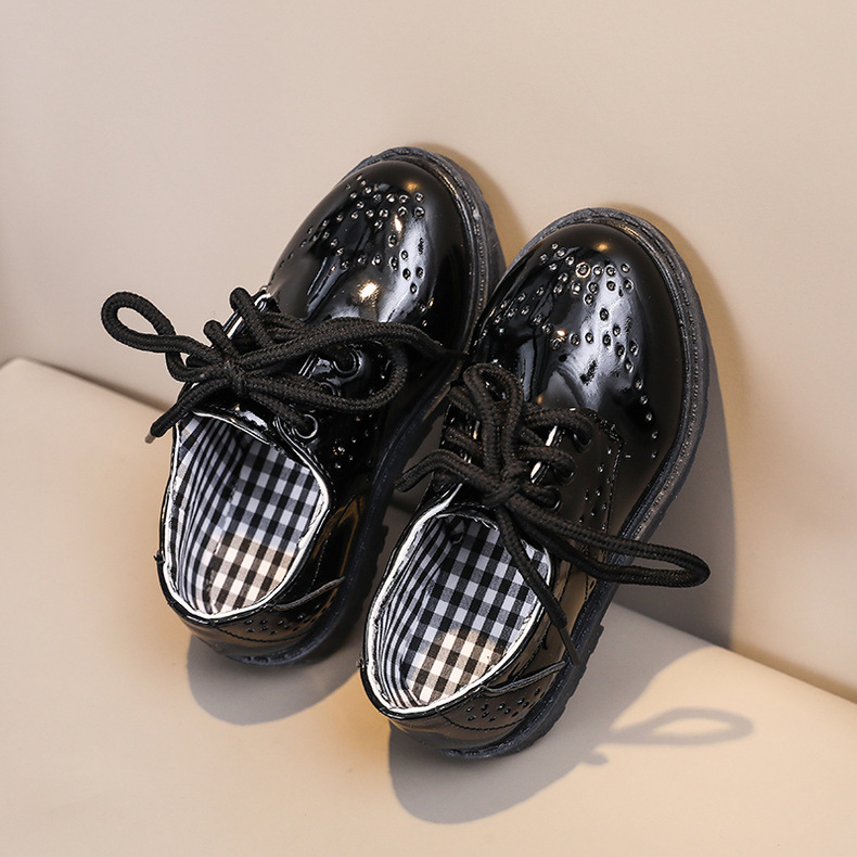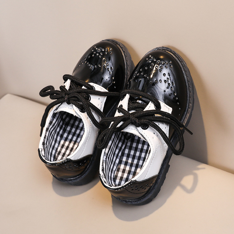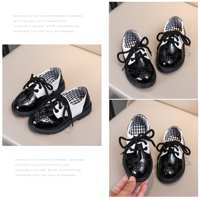 소년 싱글 신발 어린이 흑백 가죽 신발 학생 영국 스타일 캐주얼 신발 꽃 어린이 세트 원피스 성능 가죽 신발스토어 가기