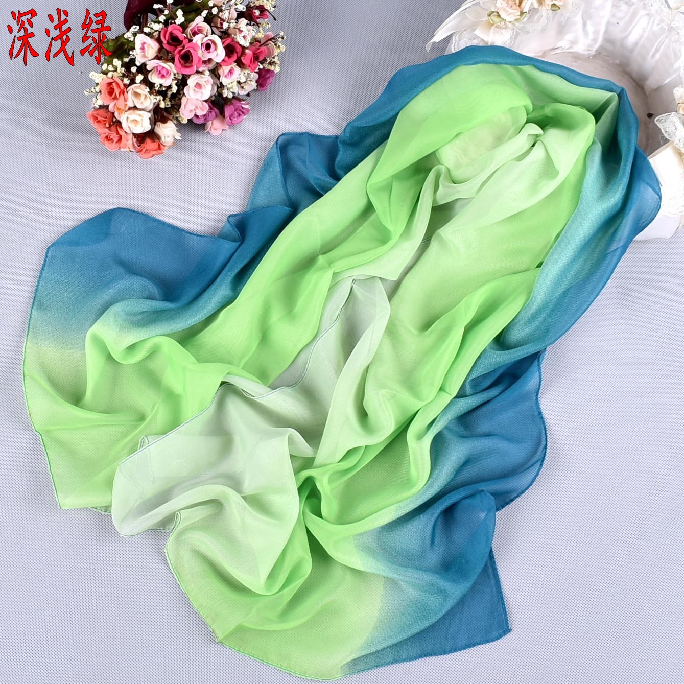 클래식 패션 그라디언트 쉬폰 숙녀 스카프 도매 봄과 여름 새 스카프 부드러운 스카프 공장 직매스토어 가기