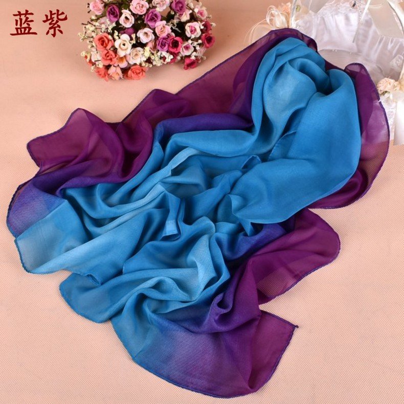 • 名称:  三色渐变雪纺长丝巾