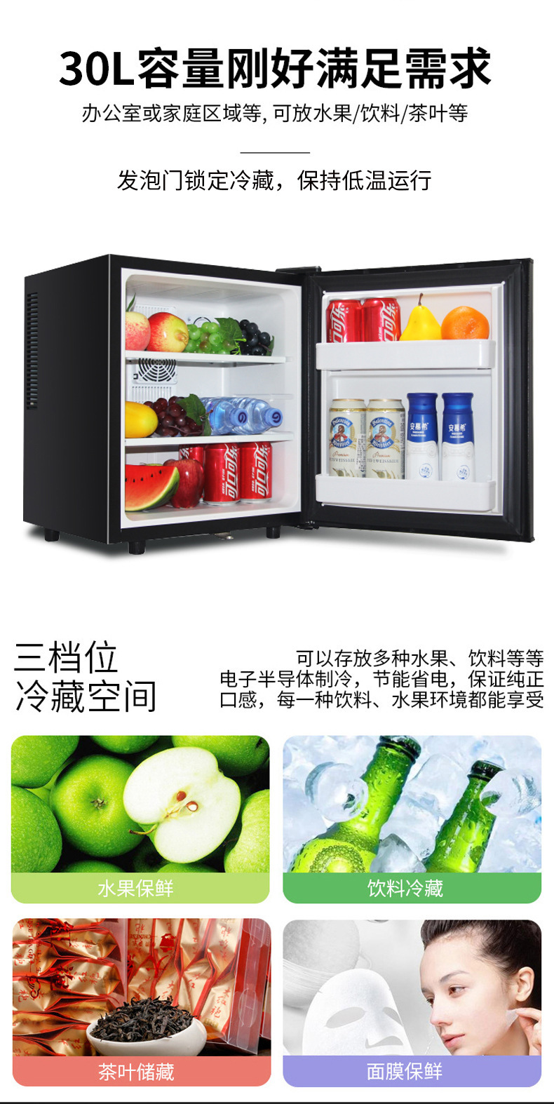 허니슨 호텔 미니 냉장고 단문형 상업용 냉동고 30L 냉장 및 신선도 유지 소형 냉장고