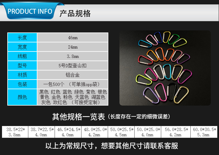 소스 제조업체 No. 5 D 형 등산 버클 알루미늄 합금 주전자 버클 소독 병 버클 수하물 배낭 버클