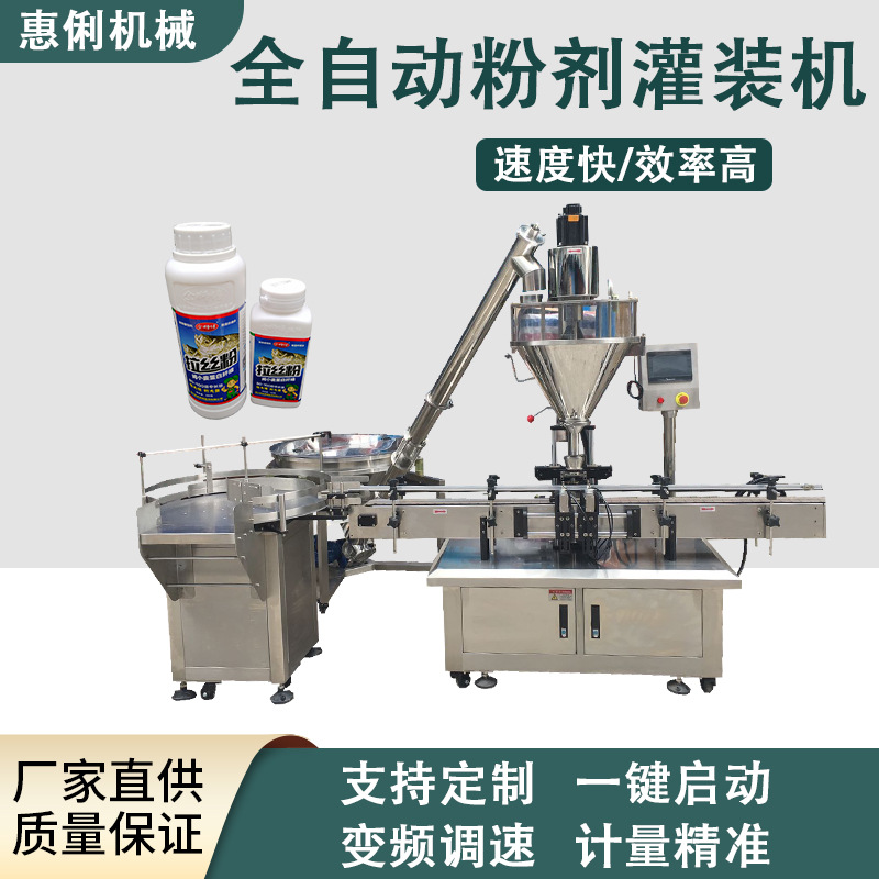 该机是一款粉末及小颗粒自动灌装机,能完成瓶子自动定位、充填及计量等工作,他由一个充填头、一台链板输送带及一个定位装置组成,采用伺服马达、PLC及触摸屏控制,操作简便、稳定性高。 可与理瓶机、旋盖机、贴标机等组成整套灌装流水线。适用于包装粉末及小颗粒物料,如粉剂、小颗粒剂药品,兽药、葡萄糖、调味品、固体饮料、碳粉、爽身粉、农药等。