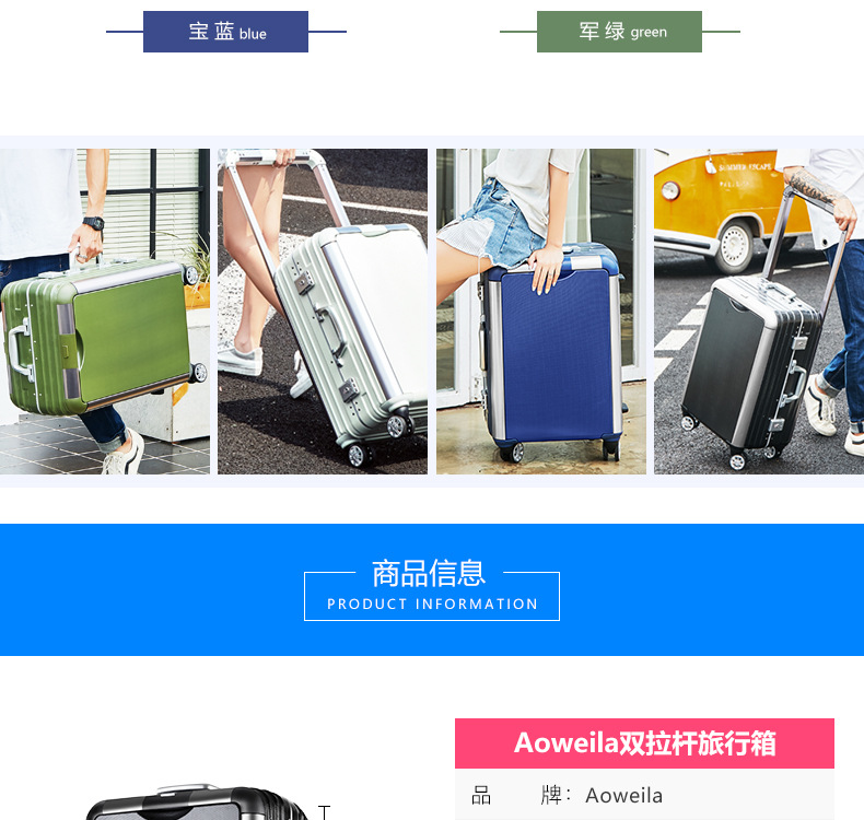 새로운 비즈니스 와이드 풀로드 수하물 더블 풀로드 알루미늄 프레임 풀로드 케이스 대용량 유니버설 휠 커플 암호 가방스토어 가기