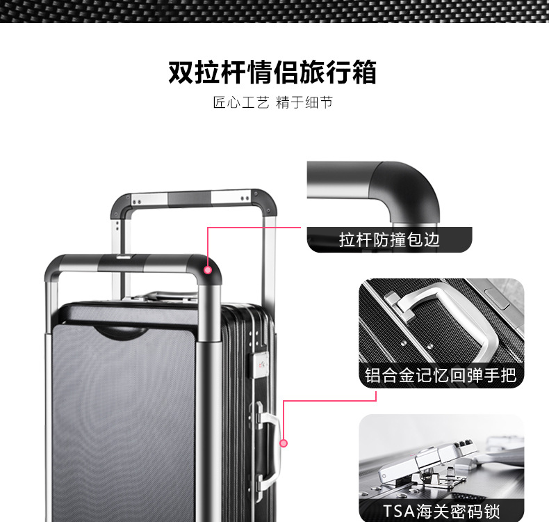 새로운 비즈니스 와이드 풀로드 수하물 더블 풀로드 알루미늄 프레임 풀로드 케이스 대용량 유니버설 휠 커플 암호 가방