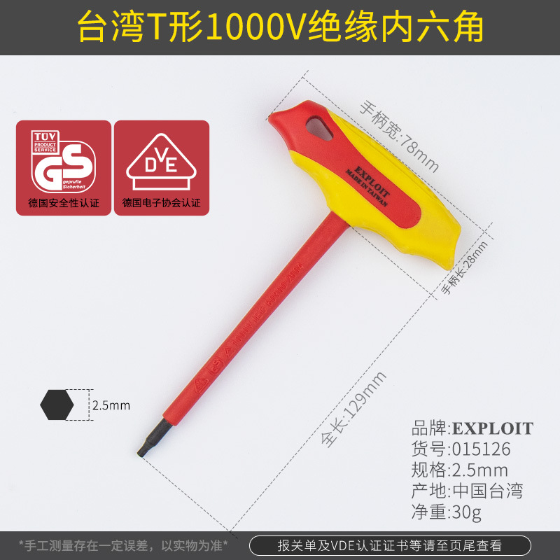 대만 VDE 인증 개발 1000V 압력 절연 L 자형 T 형 앨런 렌치 전기 새로운 에너지 도구스토어 가기
