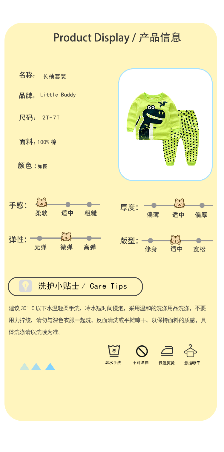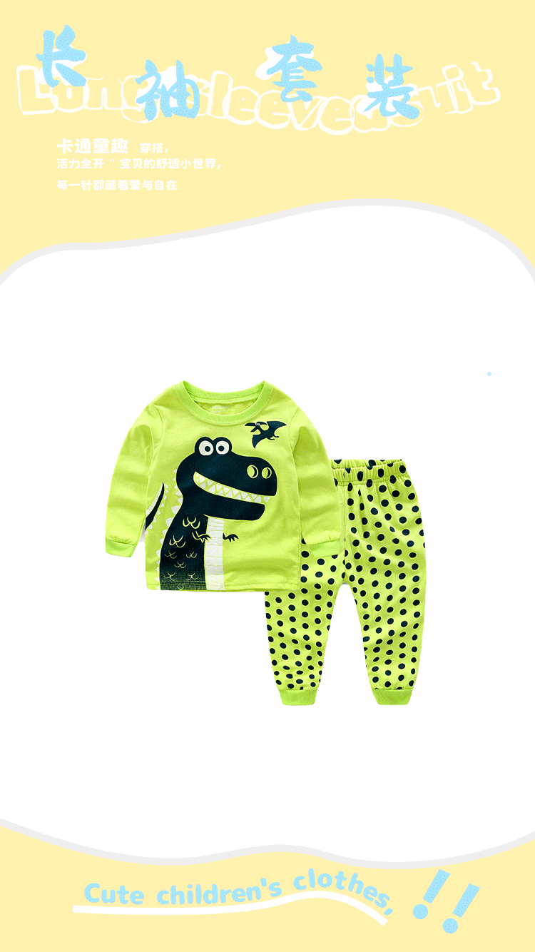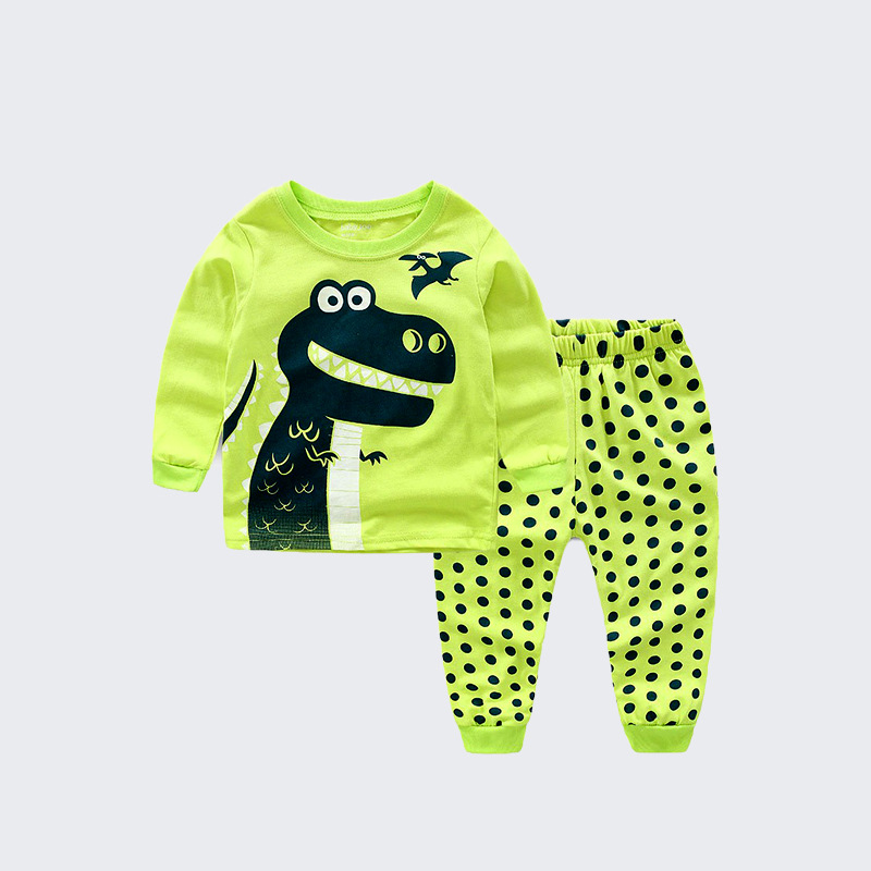 면 아동 의류 소년 아기 아동 의류 긴팔 공룡 아동복 세트 잠옷 에어컨 의류 드롭 배송