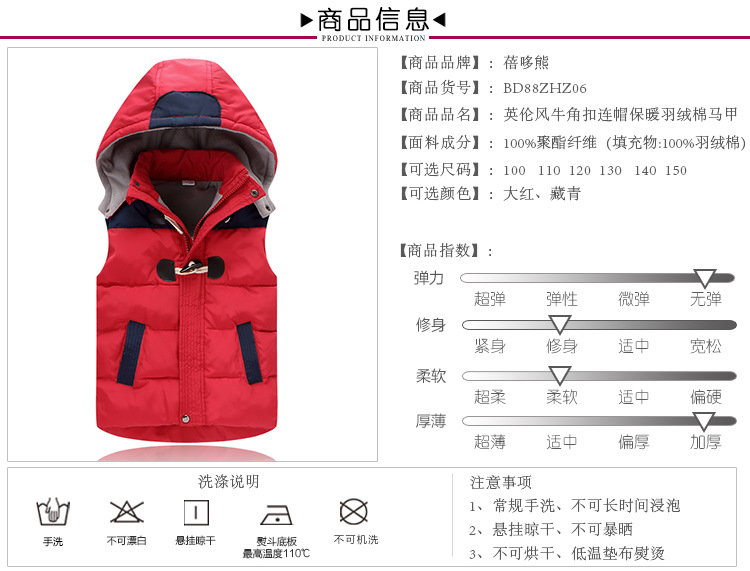 가을과 겨울 크로스 보더 새로운 두꺼운 따뜻한 지방 아동 의류 큰 어린이 교복 어린이 다운 면 조끼 재고 도매스토어 가기