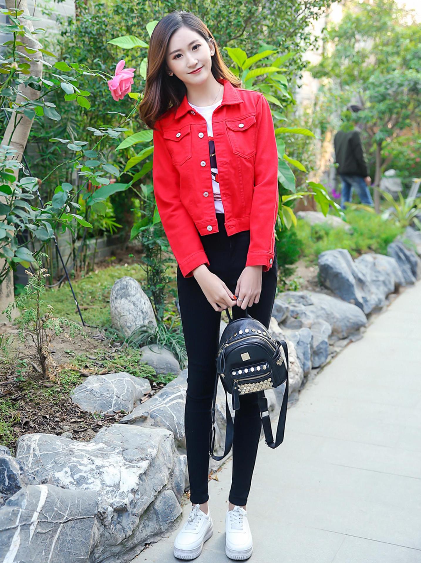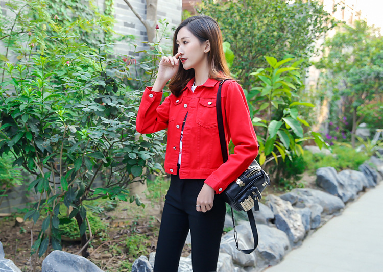 한국 여성 새로운 봄과 가을 데님 코트 여성 슬림 핏 한국 컬러 학생 캔디 탑 재킷스토어 가기
