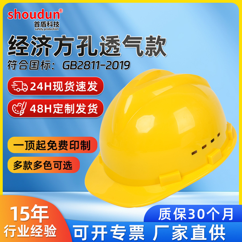 첫 번째 방패 국가 표준 사이트 헬멧 엔지니어링 건물 안티 스매싱 V 형 통기성 노동 보호 인쇄 가능한 안전 헬멧 통기성 및 편안한