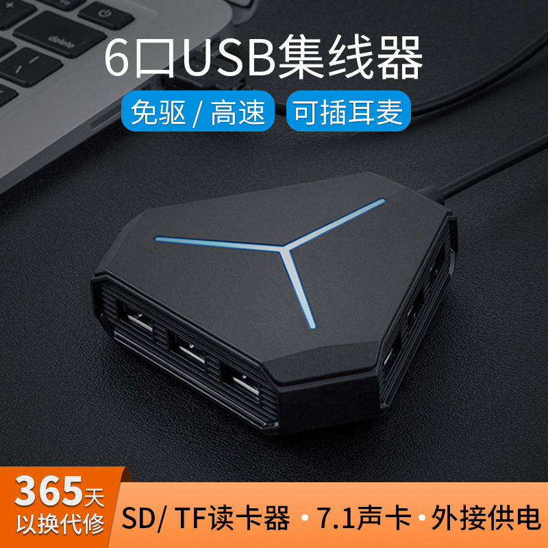 USB 분배기 컨버터 다중 인터페이스 허브 USB 고속 1대6 확장기 카드 리더기 USB 사운드 카드스토어 가기