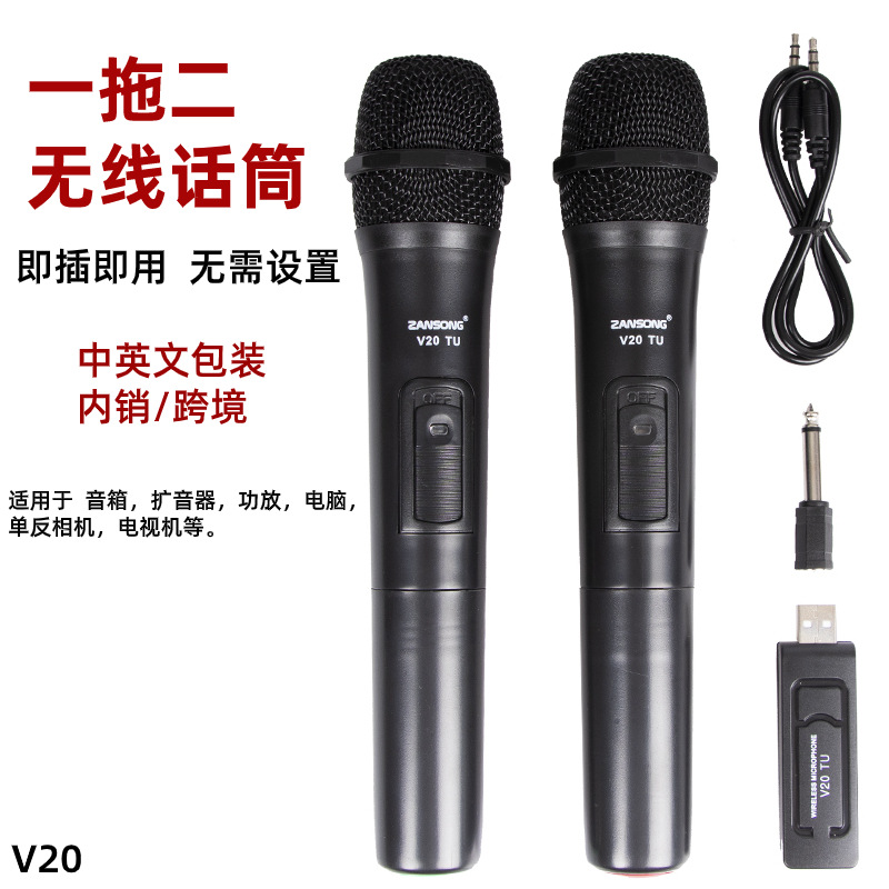 USB 1 대 2 무선 마이크 V20 가정용 노래 범용 야외 오디오 앰프 성능 범용 마이크