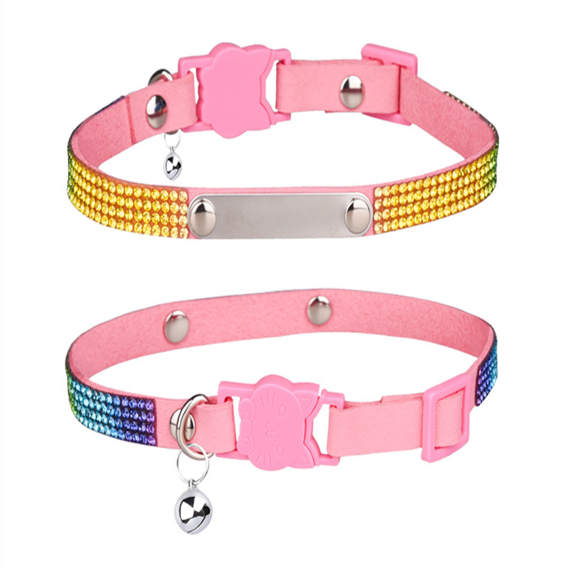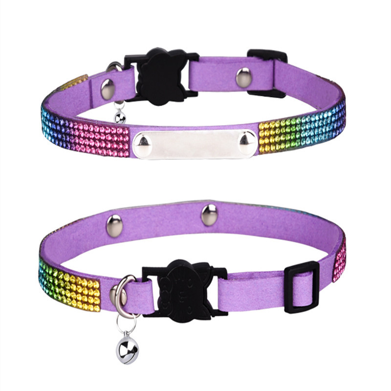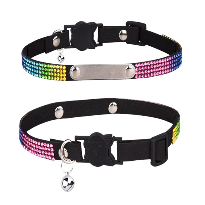 모조 다이아몬드 고양이 목걸이 조각 손실 방지 애완 동물 목걸이 꽃 고양이 목 교수형 벨 고양이 벨트 질식 방지 고양이 버클