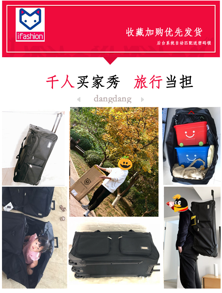 ★ 1:容量大虽然本店有无条件退换货,但还是希望淘友能多了解一下本款。很多朋友买回去觉得大我们再次提示,您先跟普通箱子比较一下尺寸,这款箱子是软箱牛津面料的收到货的时候是扁的,要装东西才能撑起来。
