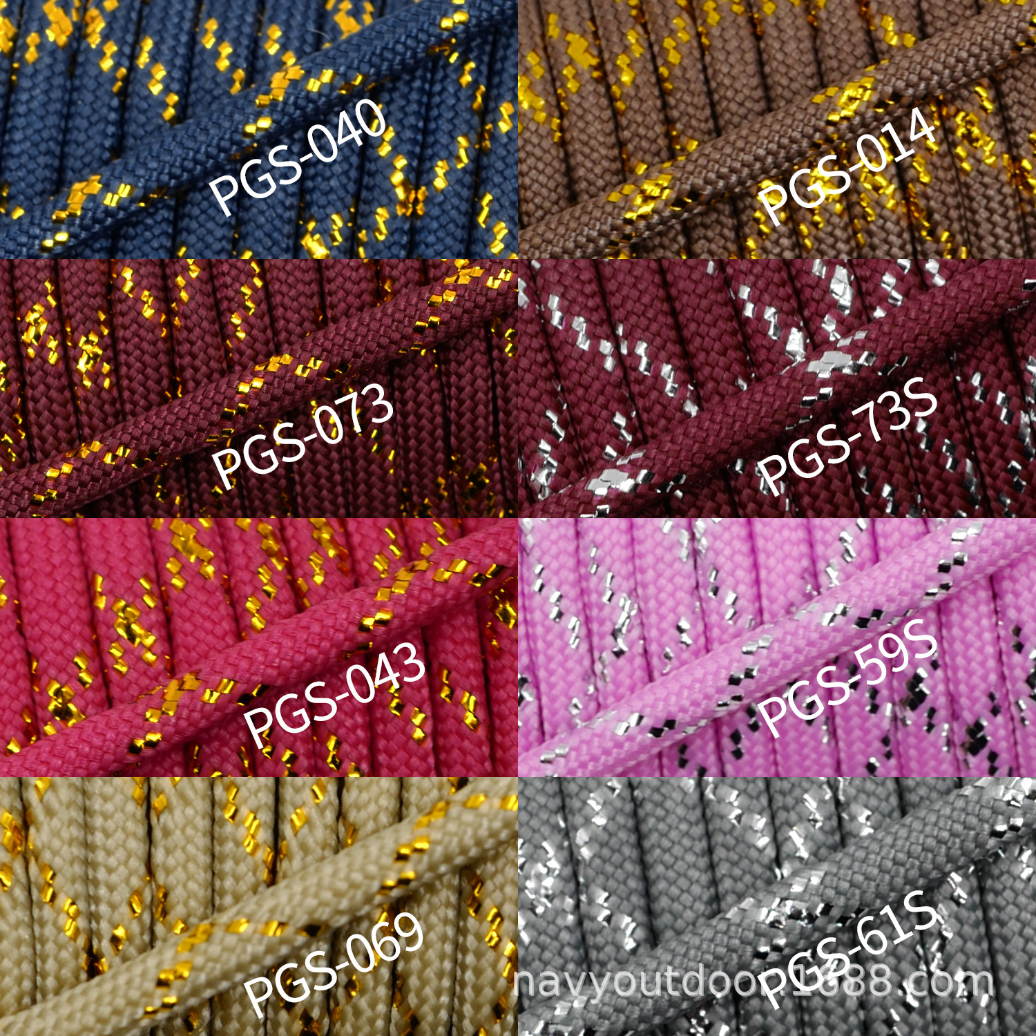 新款七芯金银线伞绳,在原有的伞绳上加上金线银线,可以当作追踪线或者 装饰线。多色可选,按550标准制作,进口设备绕制,质量超好,直径4毫米,单绳拉力在280斤左右。我们是生产厂家,有大量现货,接受其它颜色定制。