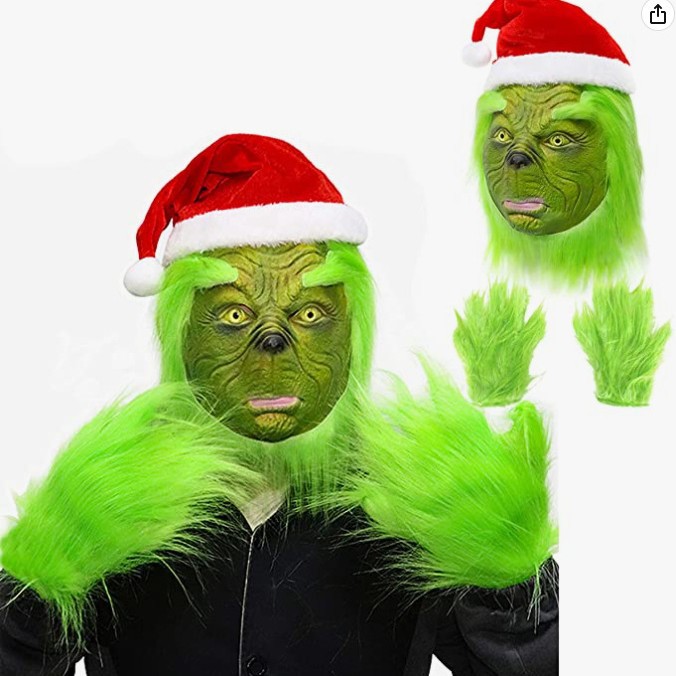 크리스마스 의상 크리스마스 괴짜 도둑 녹색 머리 괴물 그린 치 마스크 헤드 기어 파티 의상 아마존 폭발스토어 가기