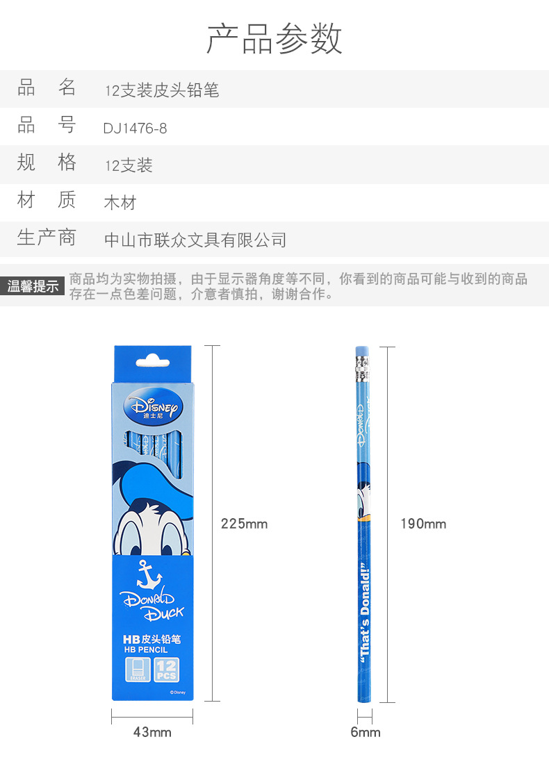 产品名称:迪士尼卡通铅笔12支装