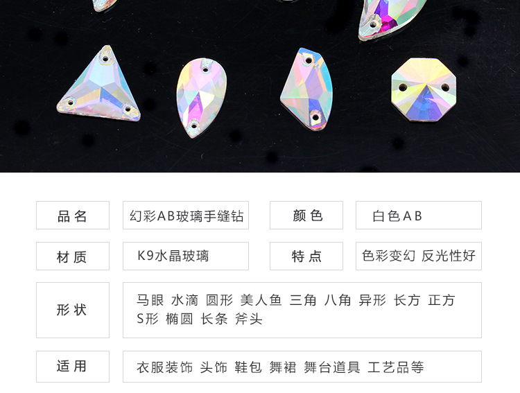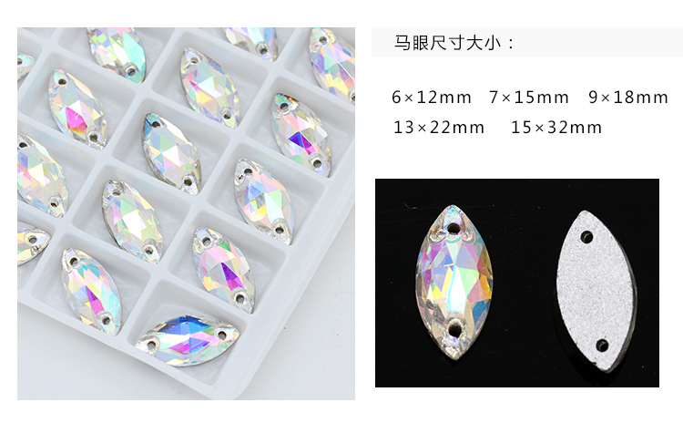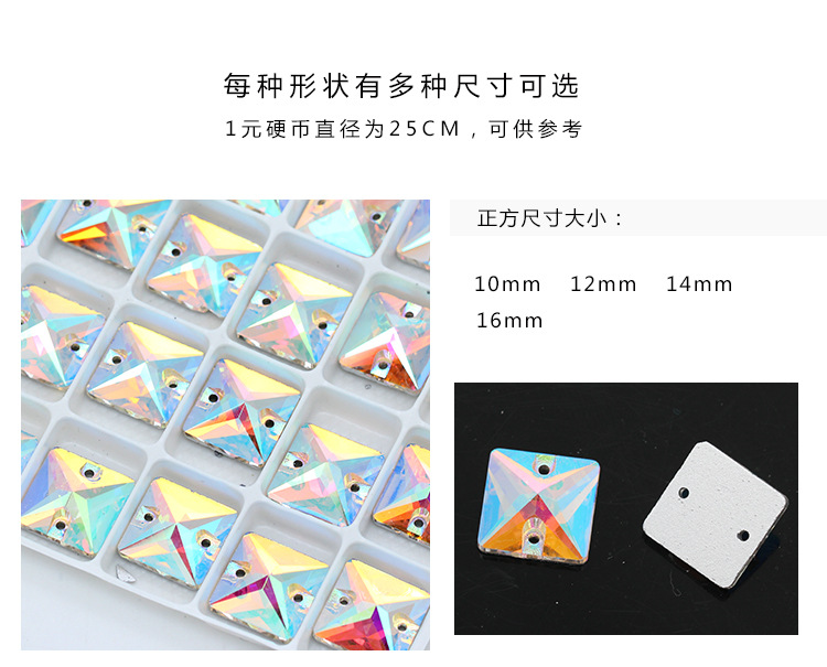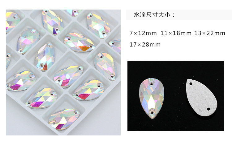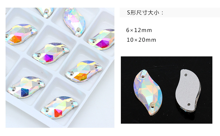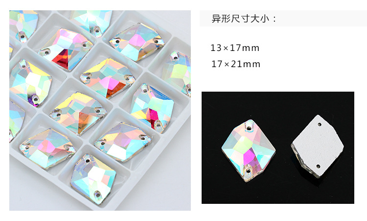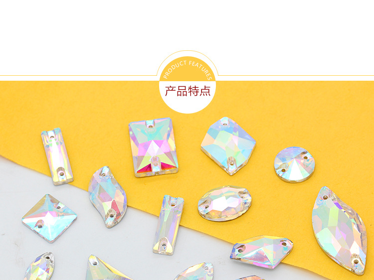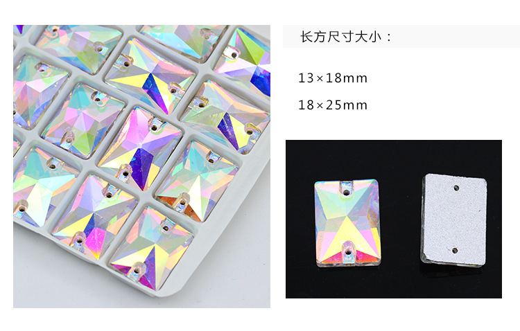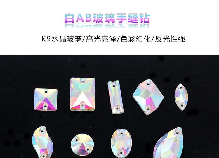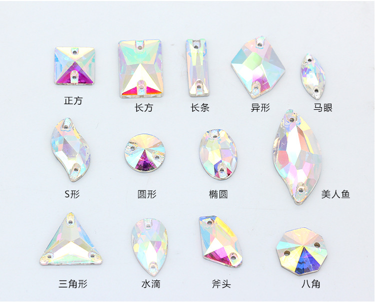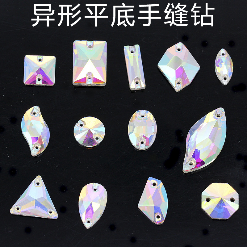 슈퍼 쿨 AB 매직 컬러 유리 손 재봉 드릴 플랫 하단 이중 구멍 손 재봉 드릴 플랫 버클 의류 웨딩 슈즈 액세서리 스틱 드릴