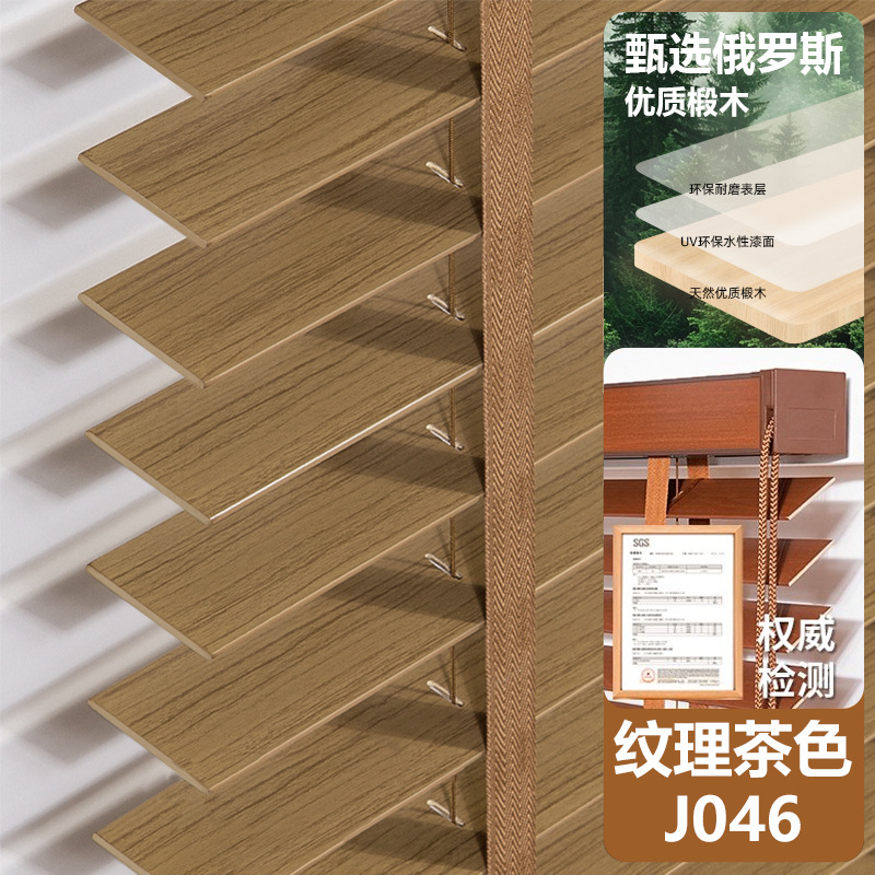원목 블라인드 커튼, 빛 차단, 무타공, 라이트 럭셔리 전동 블랙 롤업식 리프트 중세풍 블라인드 커튼
