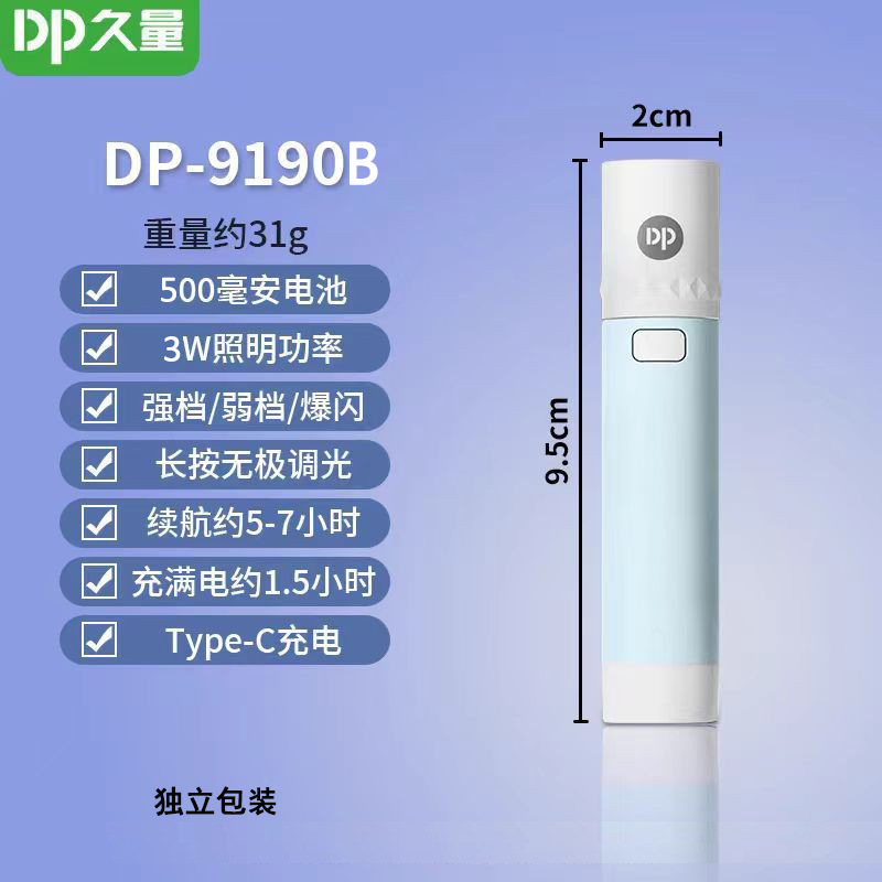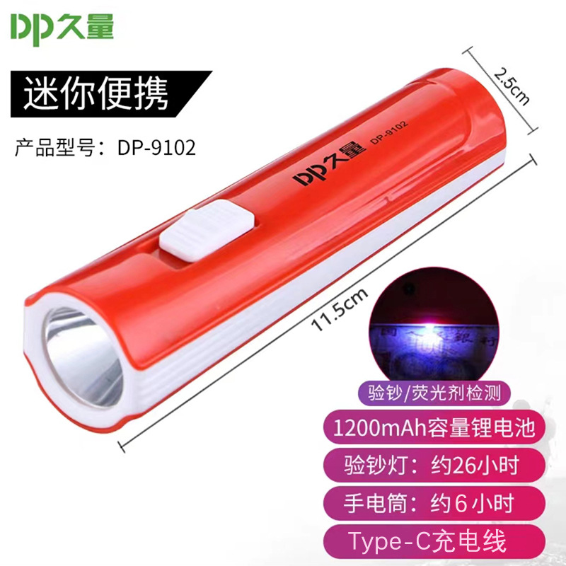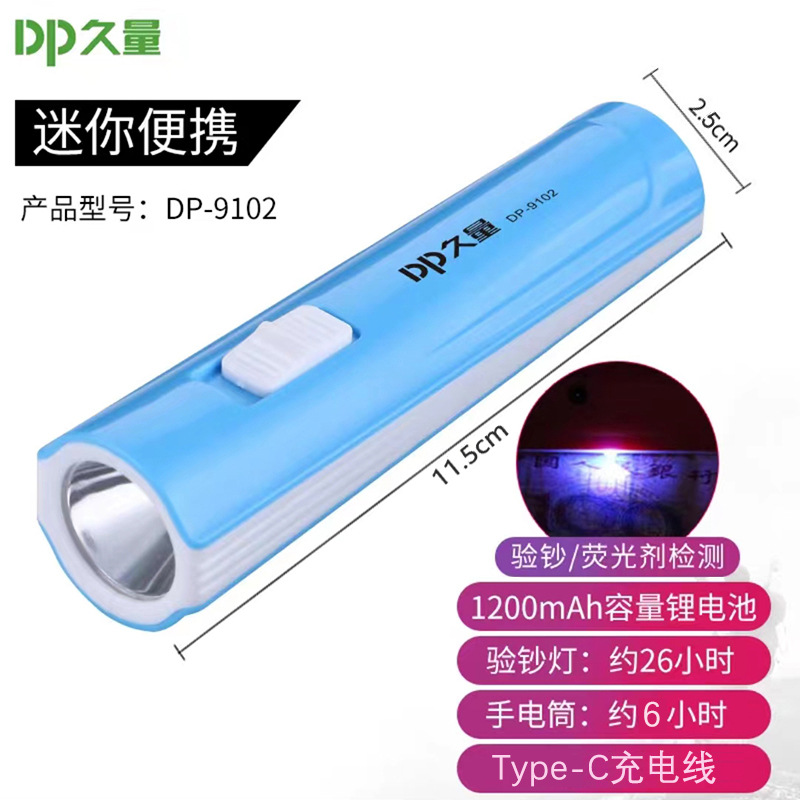 장기 강광 LED 소형 손전등 지폐 체크 미니 휴대용 충전식 리튬 배터리 가정 옥외 고휘도 9102
