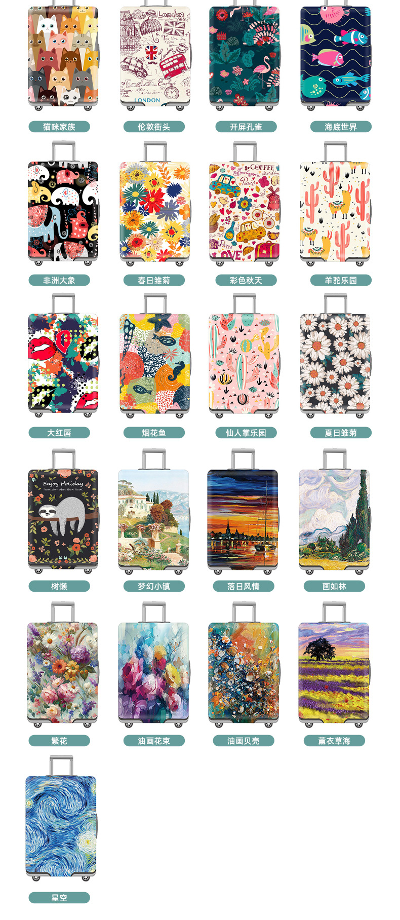 보호 케이스 수하물 케이스 수하물 케이스 인쇄 가방 케이스 두꺼운 탄성 수하물 케이스 트롤리 케이스 맞춤 로고스토어 가기