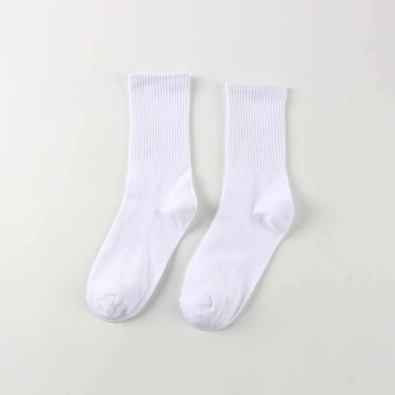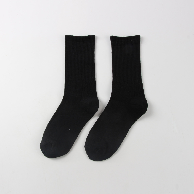 중국산 기본 흑백 단색 미드 튜브 양말 유기농면 스포츠 양말 캐주얼 심플 남성 및 여성면 스타킹