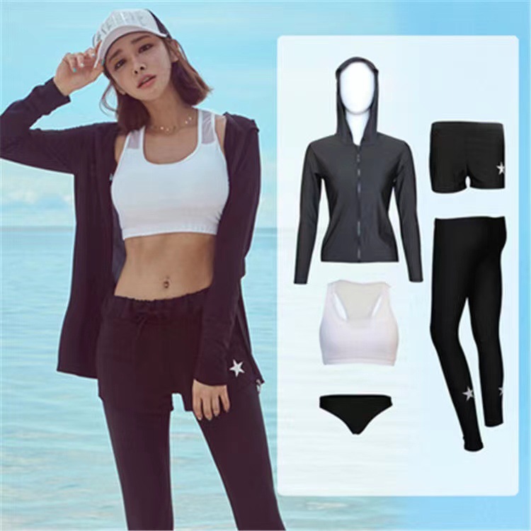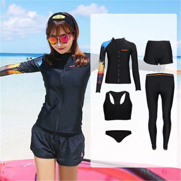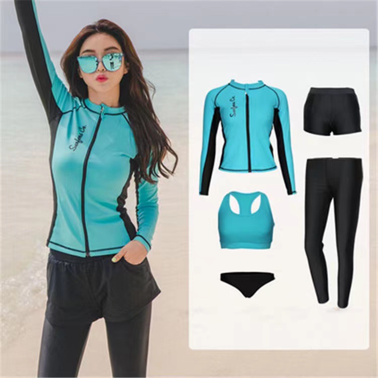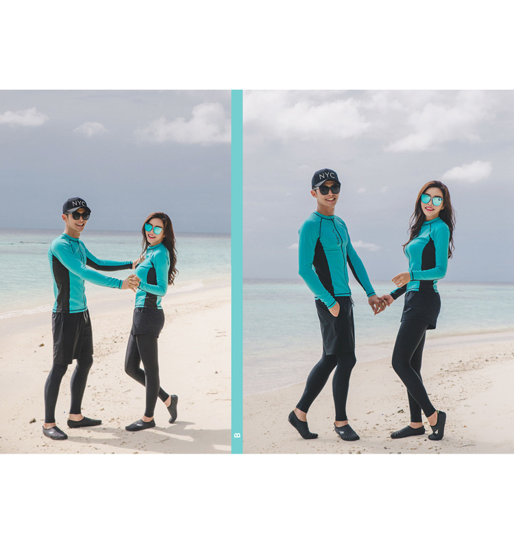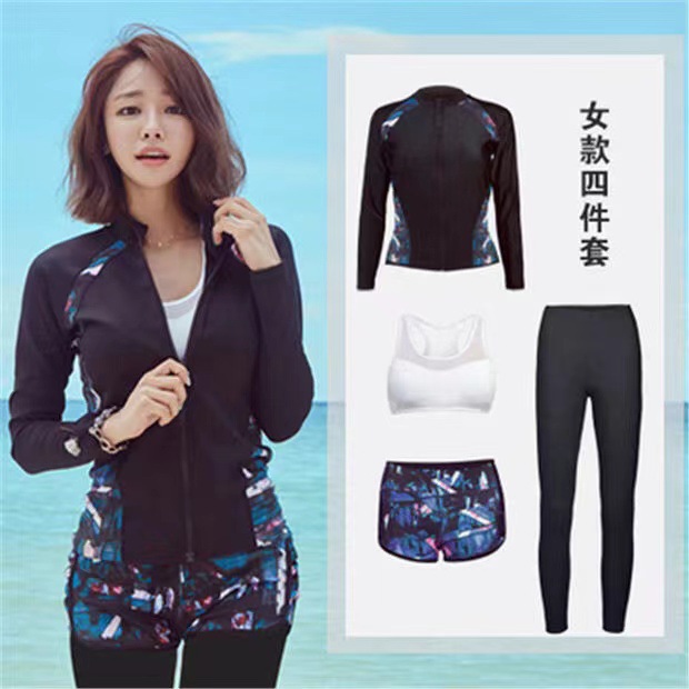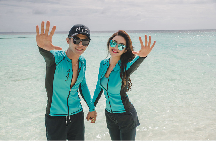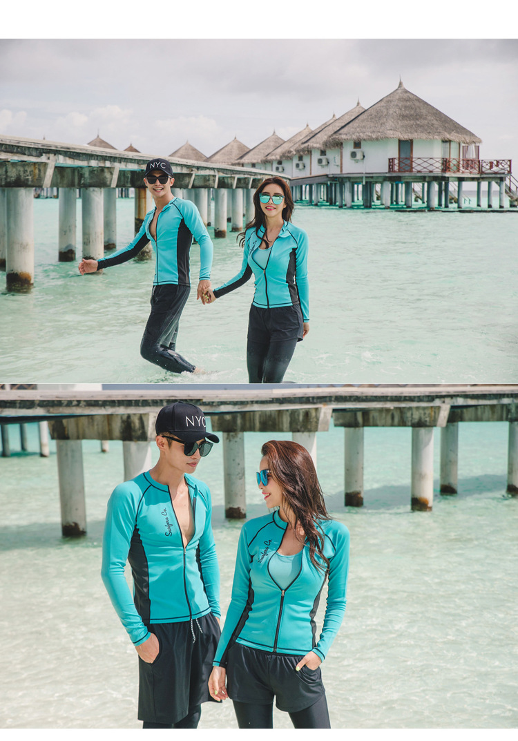 도매 한국어 버전 분할 다이빙 세트 지퍼 태양 보호 해파리 세트 남성과 여성 긴 소매 수영 세트 서핑 세트 커플 세트